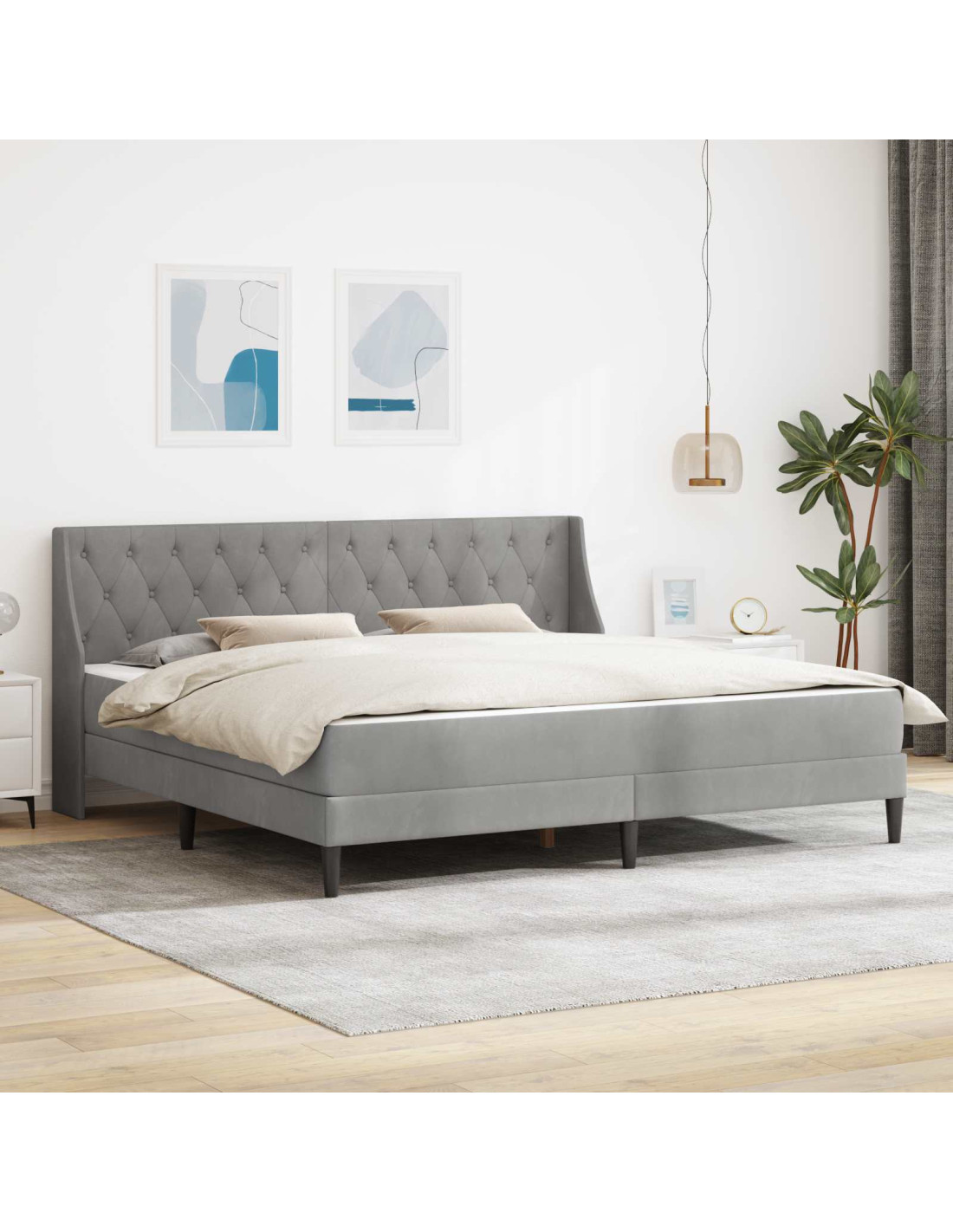 Questo telaio per letto con materasso è una soluzione stilosa per chi cerca comfort e arredo nella camera da letto. Grazie al suo design moderno, si integra perfettamente in qualsiasi interno, con una superficie in velluto che aggiunge un tocco di lusso. È perfetto per creare un ambiente accogliente dove rilassarsi dopo una lunga giornata, sia per un pisolino che per un sonno profondo.
