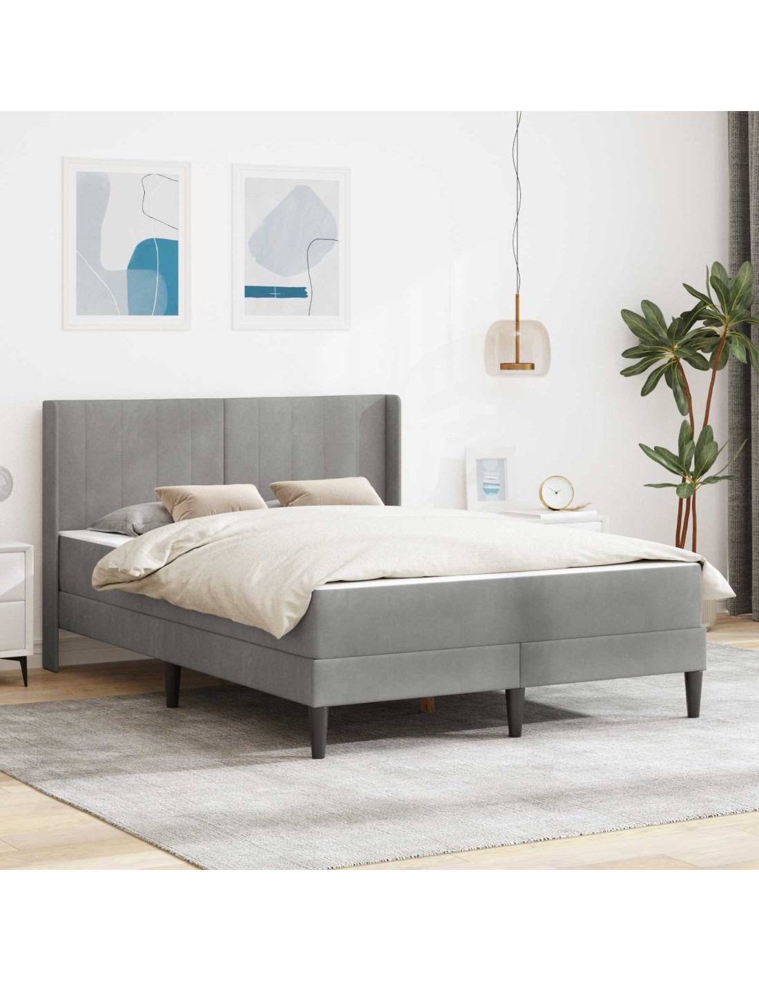 Il letto moderno unisce un design elegante e funzionale per migliorare la tua esperienza in camera da letto. Realizzato con velluto e compensato, offre un aspetto accattivante e un ambiente accogliente. Il comodo materasso in schiuma è perfetto per chi cerca stile e comfort. Ideale per qualsiasi camera da letto con stile urbano o contemporaneo, ha un aspetto raffinato per chi ama le tendenze.