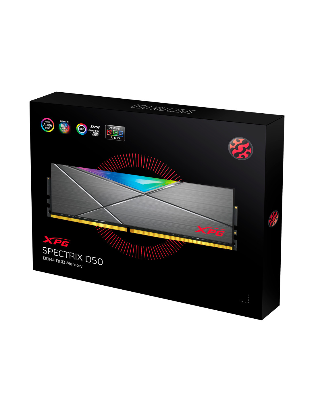 XPG SPECTRIX D50. Componente per: PC/server, Memoria Interna: 8 GB, Configurazione della memoria (moduli x dimensione): 1 x 8 GB, Tipo di RAM: DDR4, Velocità memoria: 3200 MHz, Fattore di forma memoria: 288-pin DIMM, Latenza CAS: 16