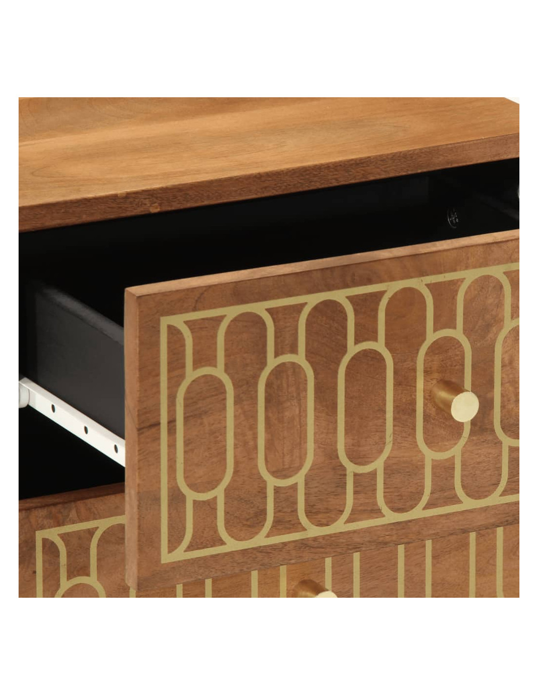 - Materiale: Legno massello di mango con finitura marrone ambra, legno multistrato, ferro
