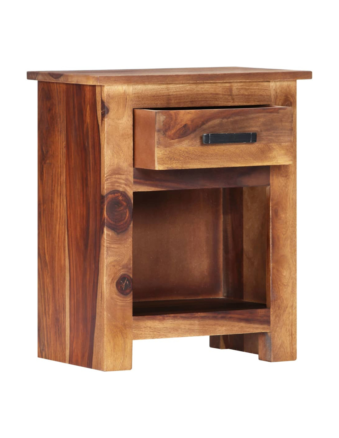 Caratterizzato da un design rustico e di tendenza, questo comodino in legno massello costituirà un'aggiunta decorativa e pratica al vostro arredamento.