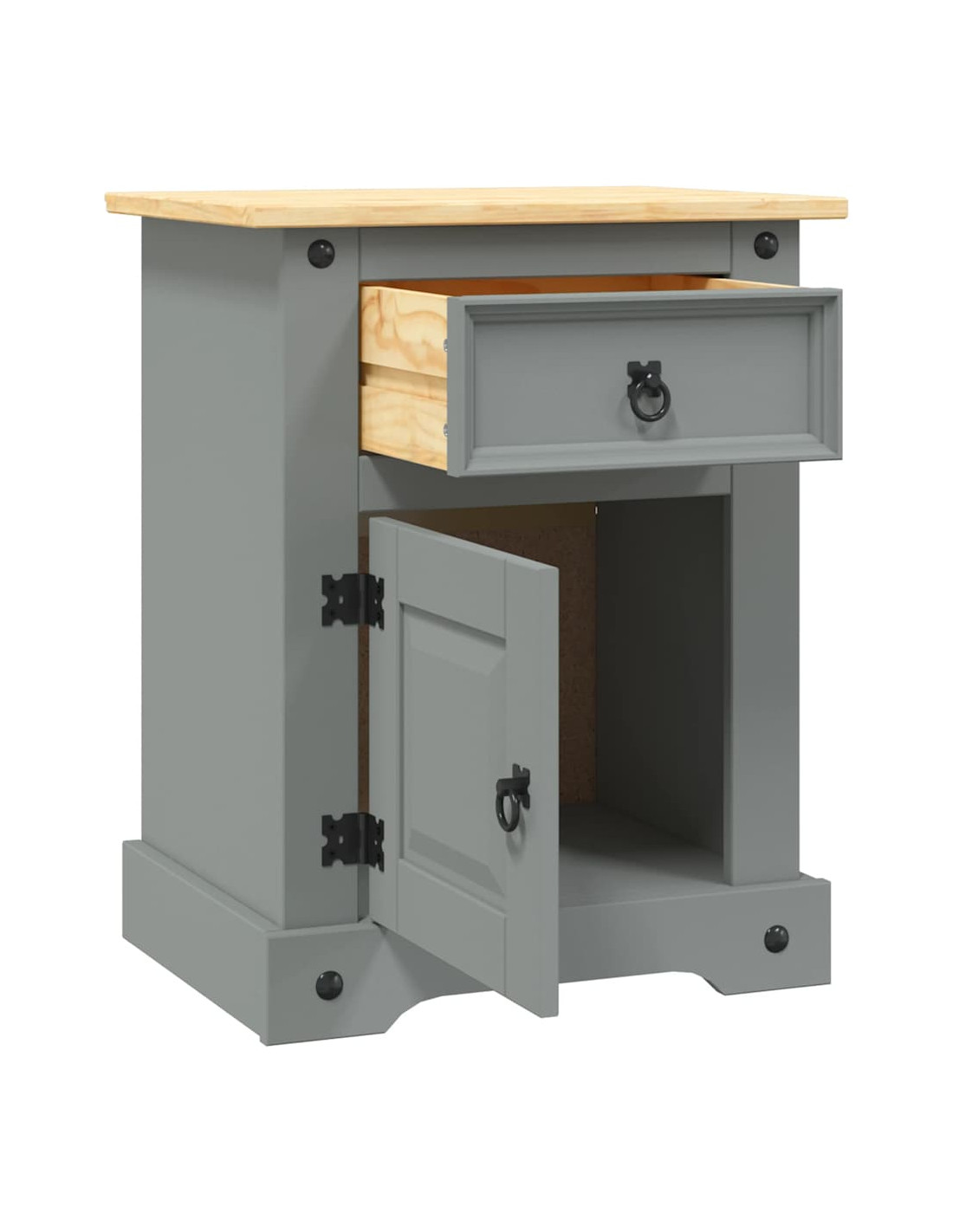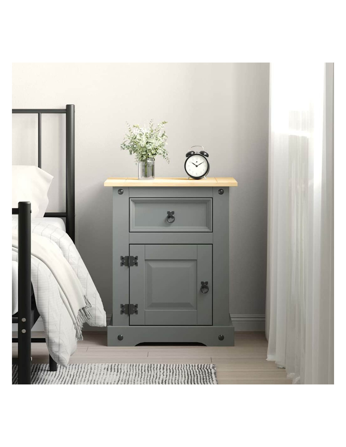 Questo comodino in legno di alta qualità è un pezzo di arredamento nello stile messicano Corona. Il pino cerato con dettagli in metallo nero emana un fascino rustico messicano che renderà il letto una fantastica aggiunta alla vostra camera da letto, camera per gli ospiti o dormitorio. Può essere utilizzato come comodino, armadietto laterale, ecc.