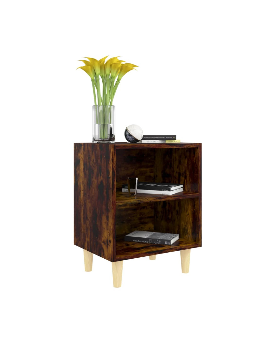 Il comodino con gambe in legno è stabile e robusto. Inoltre, il comodino è dotato di due ripiani, che offrono ampio spazio di stoccaggio per mantenere i vostri oggetti essenziali ben organizzati e a portata di mano. È facile da pulire con un panno umido.