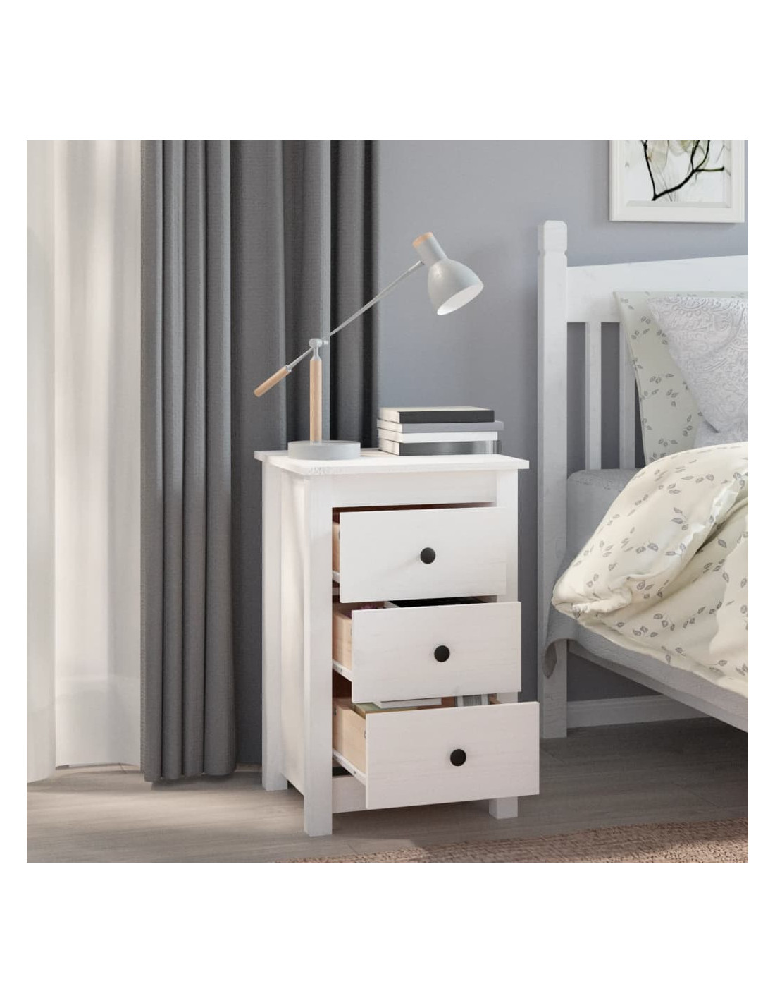 - Piano d'appoggio robusto: Il comodino è dotato di un piano d'appoggio robusto che può essere utilizzato per posizionare lampade da tavolo, libri, ecc.