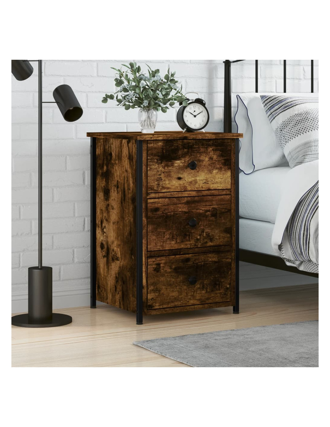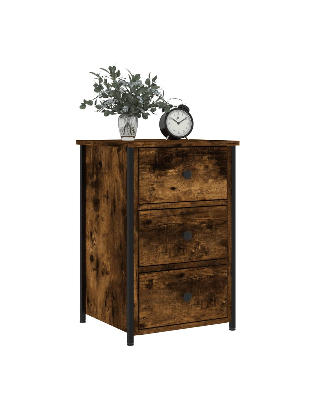 Questo comodino dal design industriale è un'aggiunta senza tempo al vostro arredamento d'interni. Materiale resistente: Il legno ingegnerizzato è di una qualità eccezionale e presenta una superficie liscia. È caratterizzato da robustezza, stabilità e resistenza all'umidità.Telaio robusto: Il telaio in ferro del comodino garantisce robustezza e stabilità.Ampio spazio portaoggetti: Il tavolino, dotato di 3 cassetti, offre un ampio spazio di conservazione per riporre i vostri oggetti di uso quotidiano in modo ordinato e a portata di mano.Piedini regolabili: Il mobiletto è dotato di 4 piedini regolabili che proteggono il pavimento dai graffi e mantengono il mobile stabile su pavimenti irregolari.Funzione espositiva: Potete anche posizionare le vostre foto preferite, decorazioni o fiori preferiti sul piano del comodino per arricchire il vostro ambiente. Avvertenza:Per evitare il ribaltamento, questo prodotto deve essere utilizzato con il dispositivo di fissaggio a parete in dotazione.