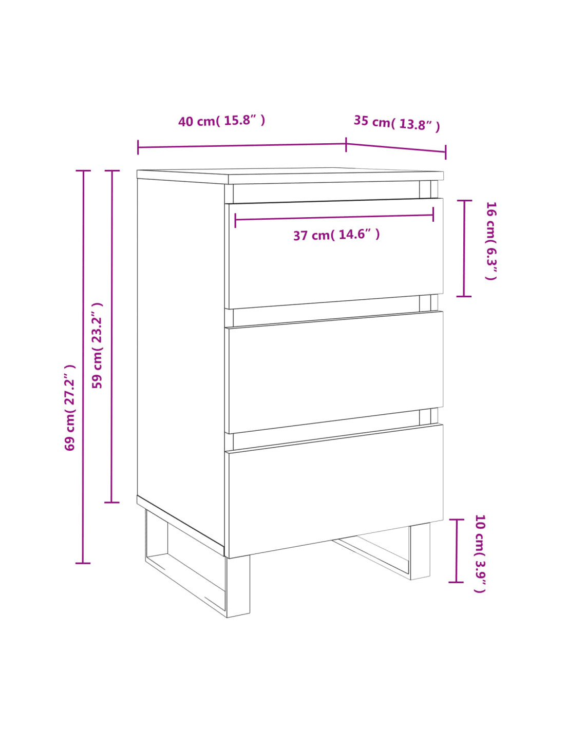 Comodini 2 pz Grigio Cemento 40x35x69 cm in Legno Multistrato