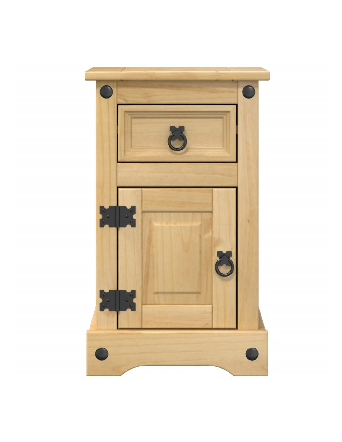 - Legno massello di pino: Il legno massello di pino è un bellissimo materiale naturale. Il legno di pino ha le venature dritte, e i nodi conferiscono al materiale il suo caratteristico aspetto rustico. Realizzato in legno massello di pino, il comodino è durevole e robusto.