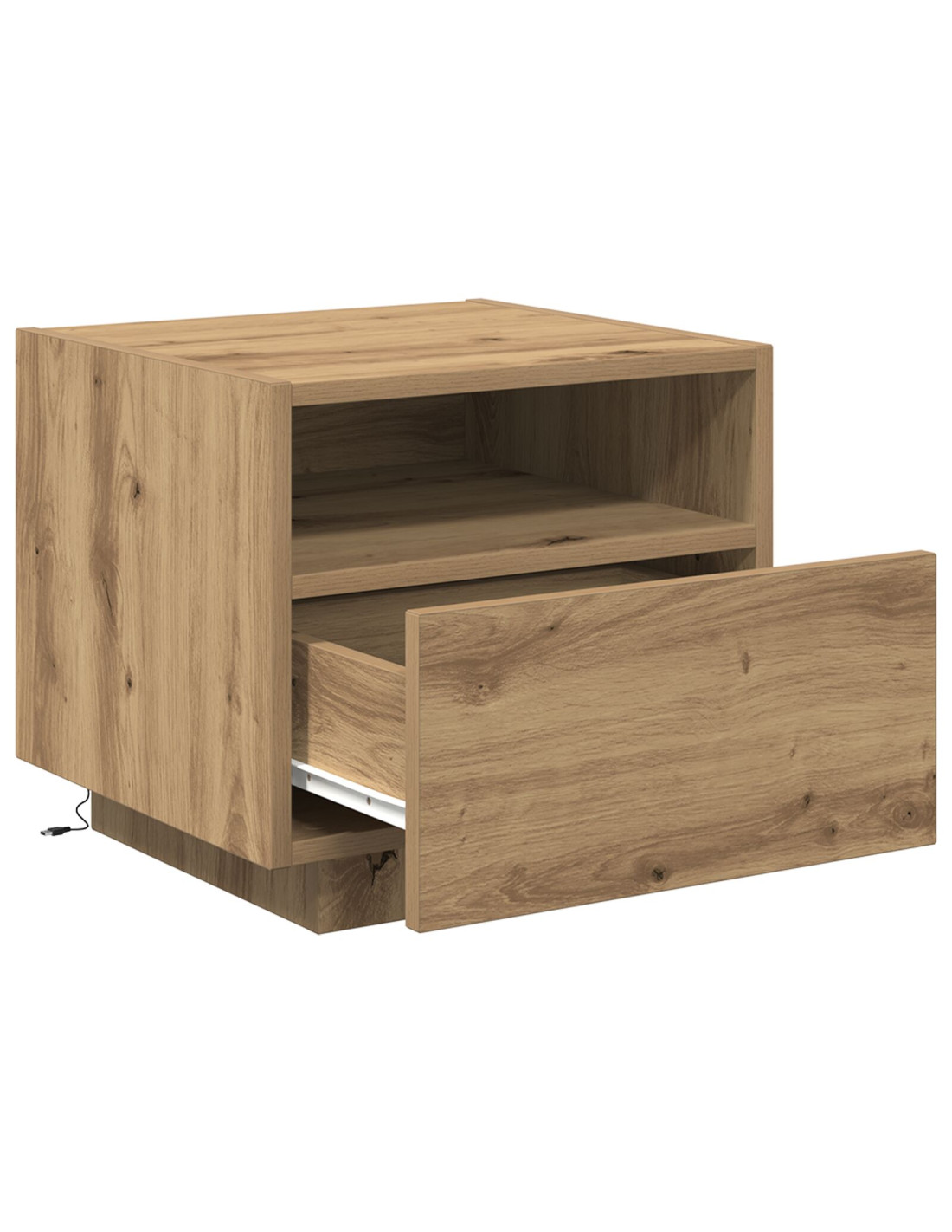 Questo comodino è la fusione ideale di fascino rustico e design moderno, realizzato con cura in legno ingegnerizzato. Perfetto per arricchire la tua camera da letto, il suo stile enfatizza la bellezza naturale e robusta con caratteristiche contemporanee. Non è solo un mobile funzionale, ma anche un elemento decorativo che aggiunge un’atmosfera calda grazie all'illuminazione LED integrata. Immagina questo comodino accanto al tuo letto, decorato con oggetti personali e che emette una luce soffusa per creare comfort e relax.