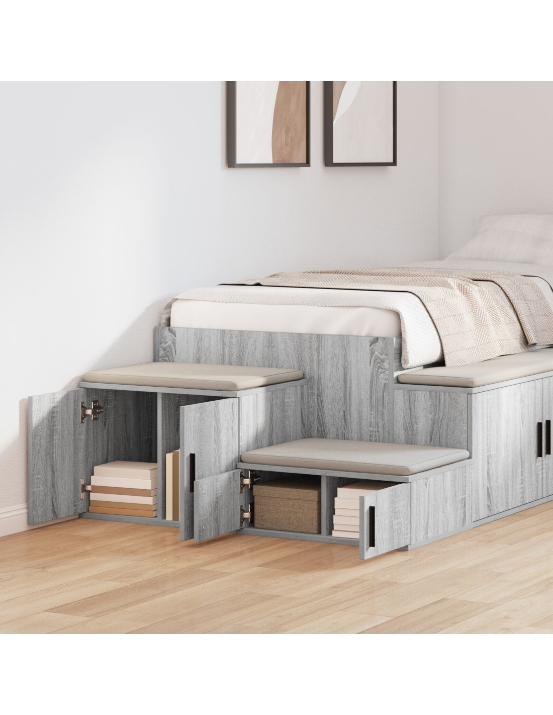 - Caratteristiche moderne: Il design di questo armadietto è moderno e si adatta bene a vari stili, grazie alle maniglie lunghe e chic e alle porte a cerniera. È pensato per chi ama la semplicità senza rinunciare alla funzionalità.