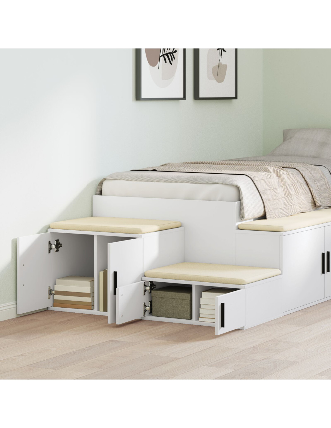 - Caratteristiche moderne: Il design di questo armadietto è moderno e si adatta bene a vari stili, grazie alle maniglie lunghe e chic e alle porte a cerniera. È pensato per chi ama la semplicità senza rinunciare alla funzionalità.