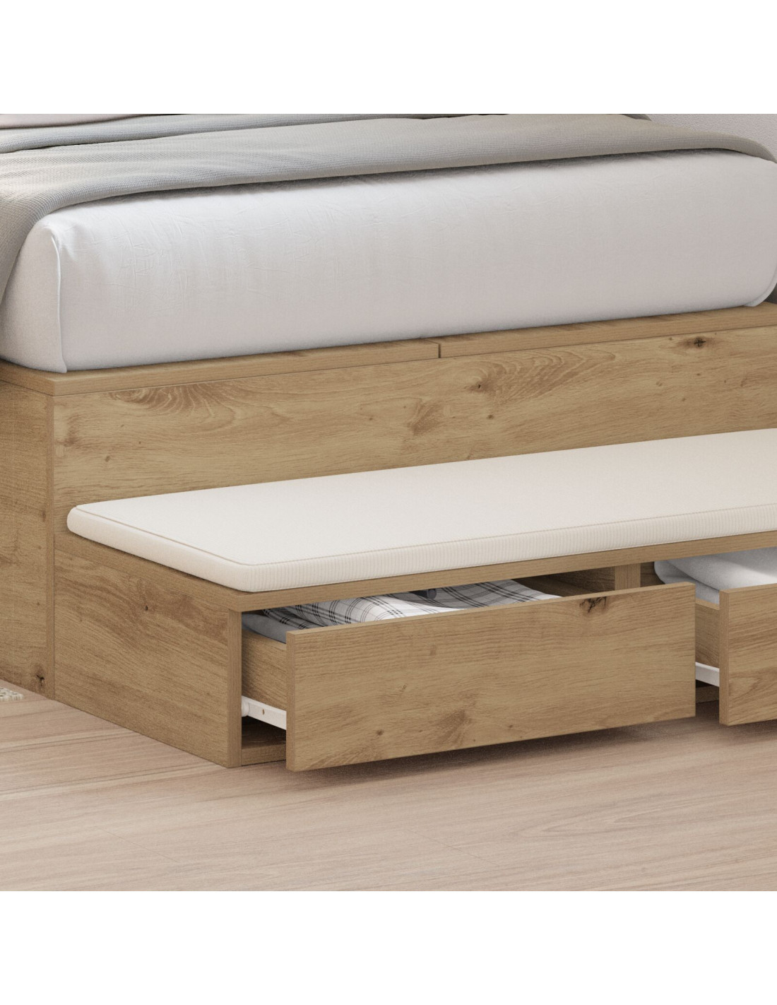 - Caratteristiche /Funzione /Design: Questi cassetti per letto sono pensati per essere versatili, trasformandosi in un sedile o gradino accanto al letto, senza compromettere il design. Il loro stile minimalista arricchisce l'atmosfera della stanza, unendo praticità e gusto moderno, adattandosi bene a spazi di varie dimensioni.