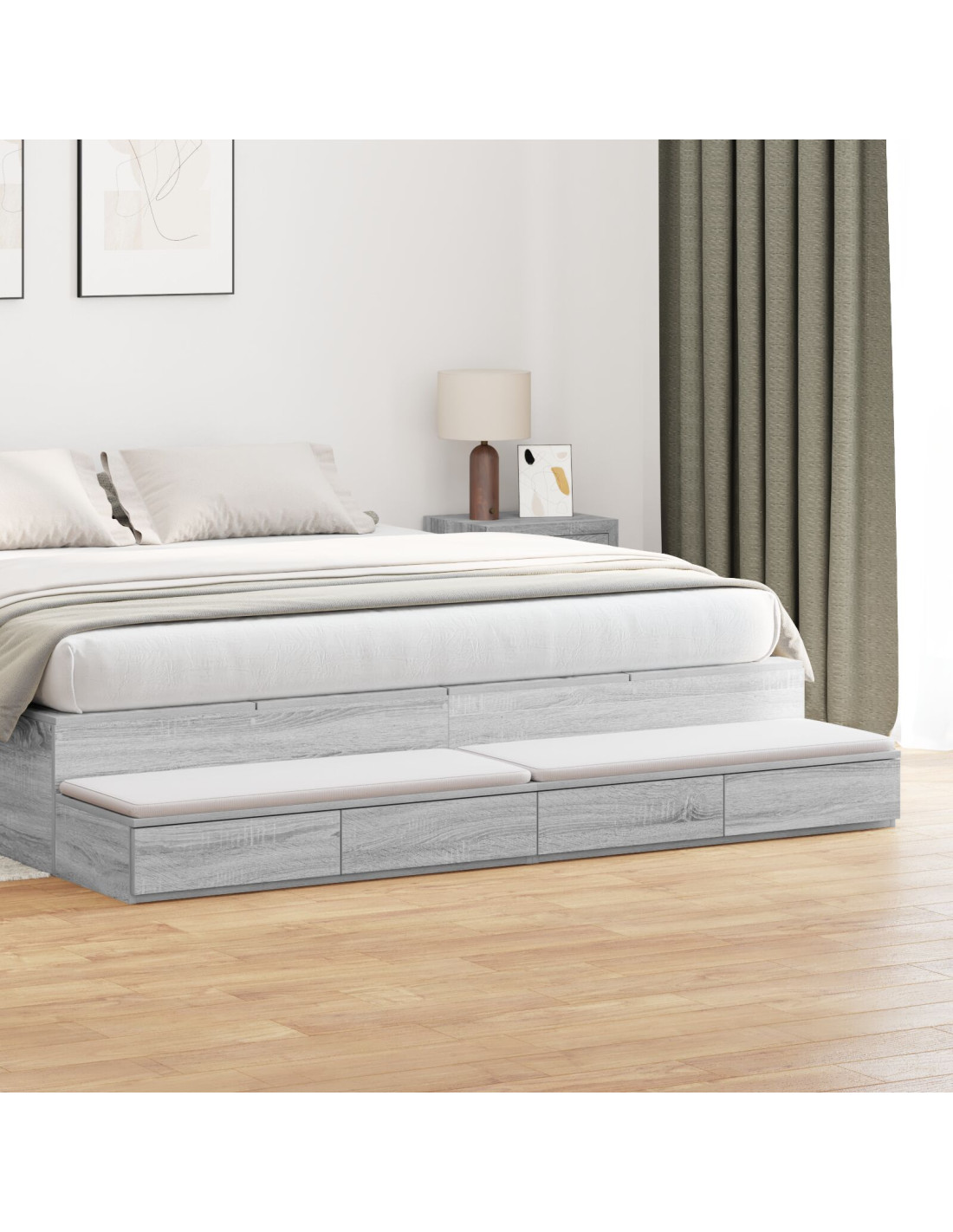 - Caratteristiche /Funzione /Design: Questi cassetti per letto sono pensati per essere versatili, trasformandosi in un sedile o gradino accanto al letto, senza compromettere il design. Il loro stile minimalista arricchisce l'atmosfera della stanza, unendo praticità e gusto moderno, adattandosi bene a spazi di varie dimensioni.