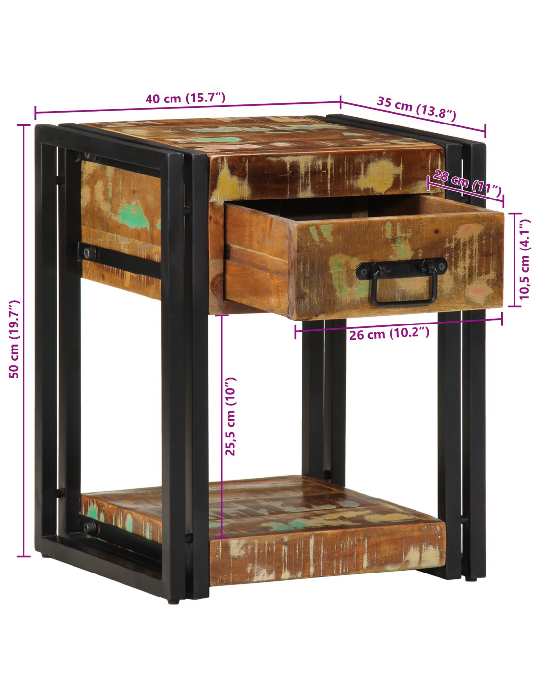 - Struttura in acciaio durevole - Il comodino è costruito con una robusta struttura in acciaio per garantire supporto e stabilità. Questo materiale offre una buona protezione contro l'usura quotidiana, unendo estetica e funzionalità per mantenere il suo fascino rustico nel tempo.