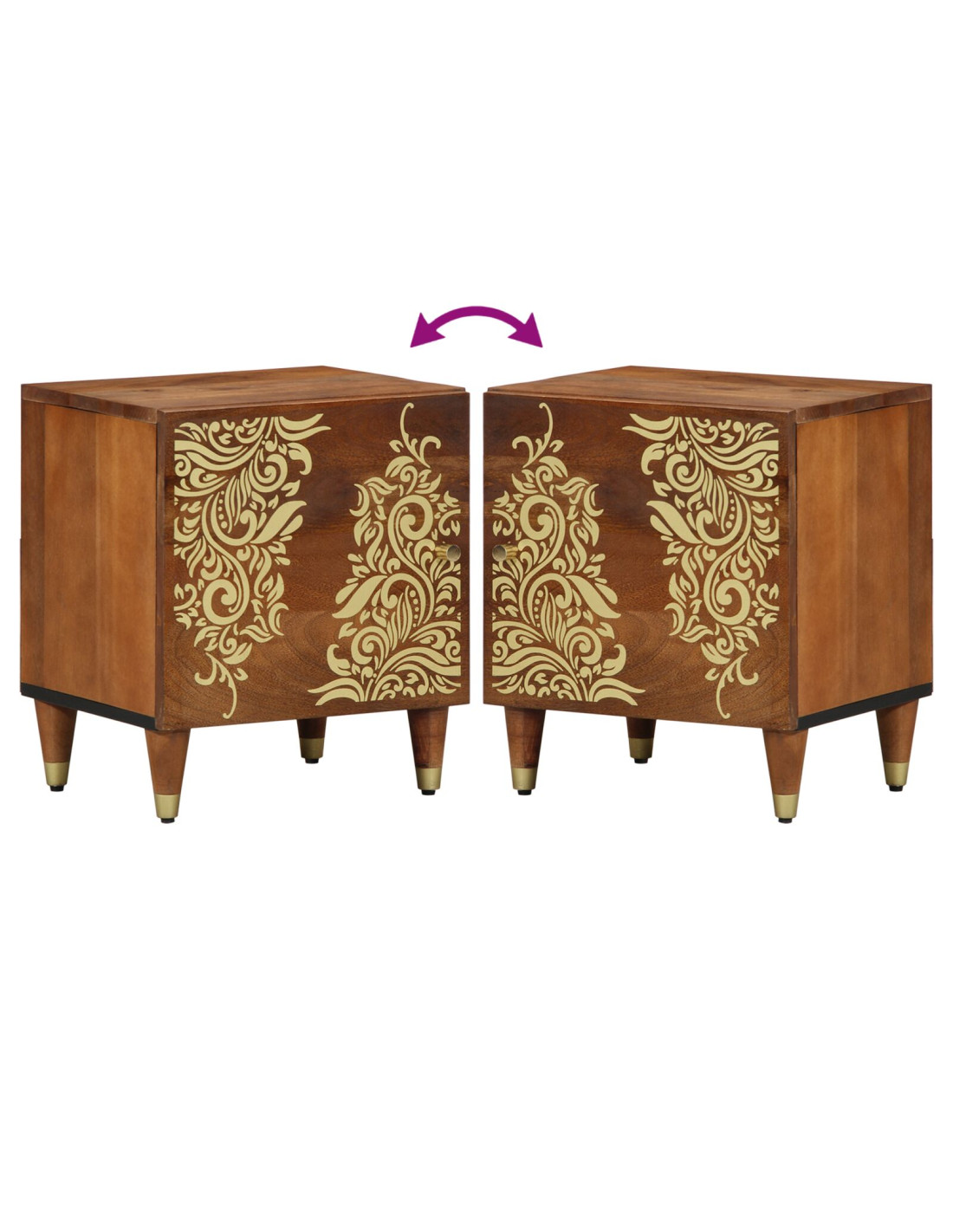 - Materiali: Fatto in legno massello di mango, famoso per la sua resistenza e i bellissimi disegni, questo comodino combina durabilità e stile. Il legno naturale porta calore e la finitura opaca assicura una superficie liscia e raffinata che resiste all'uso quotidiano.