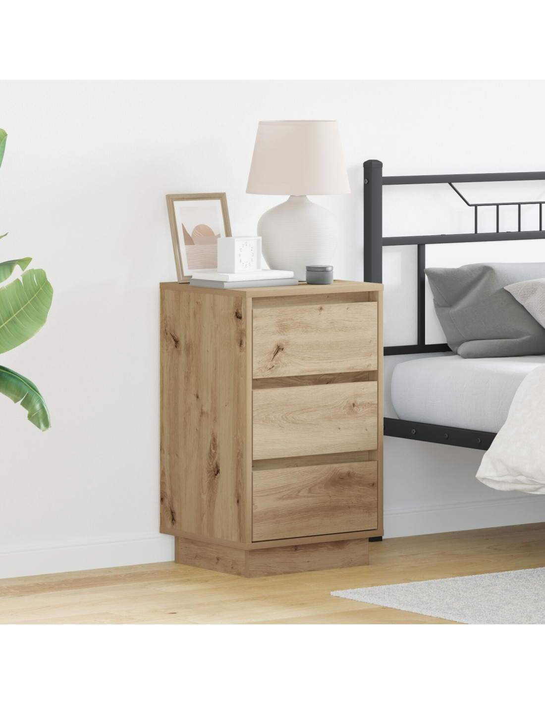 Il comodino moderno è un pezzo elegante pensato per completare qualsiasi camera da letto con le sue linee pulite e il suo stile minimal. Fatto in legno ingegnerizzato, offre un mix di praticità e fascino, rendendolo un'aggiunta perfetta per qualsiasi camera moderna. È una soluzione salvaspazio per i tuoi oggetti, portando anche un tocco di classe al tuo arredamento.