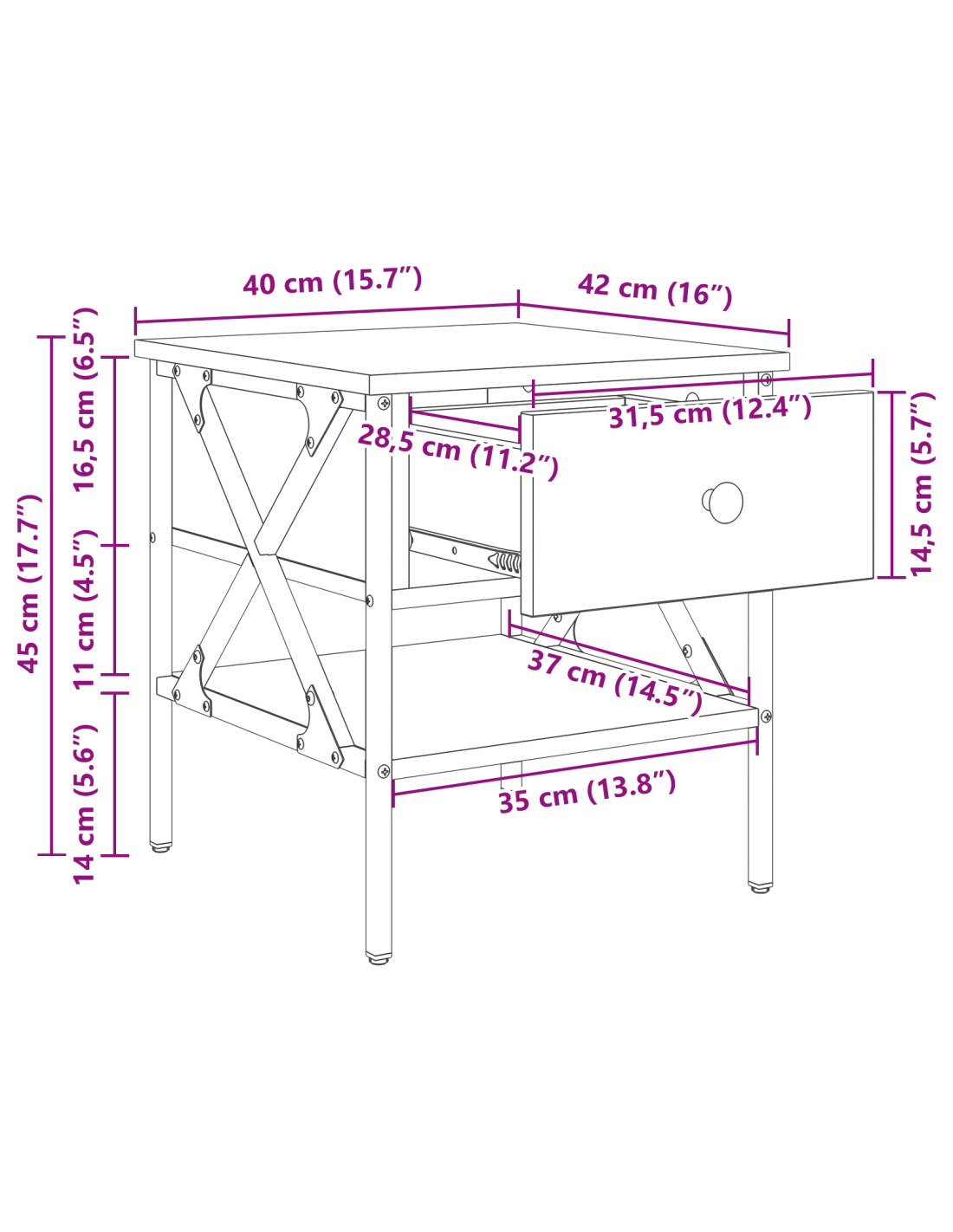 - Struttura in legno ingegnerizzato Questo comodino è fatto di legno ingegnerizzato di alta qualità, che offre stabilità ai tuoi oggetti da camera. È progettato per resistere all'usura quotidiana, quindi il suo aspetto moderno dura nel tempo.