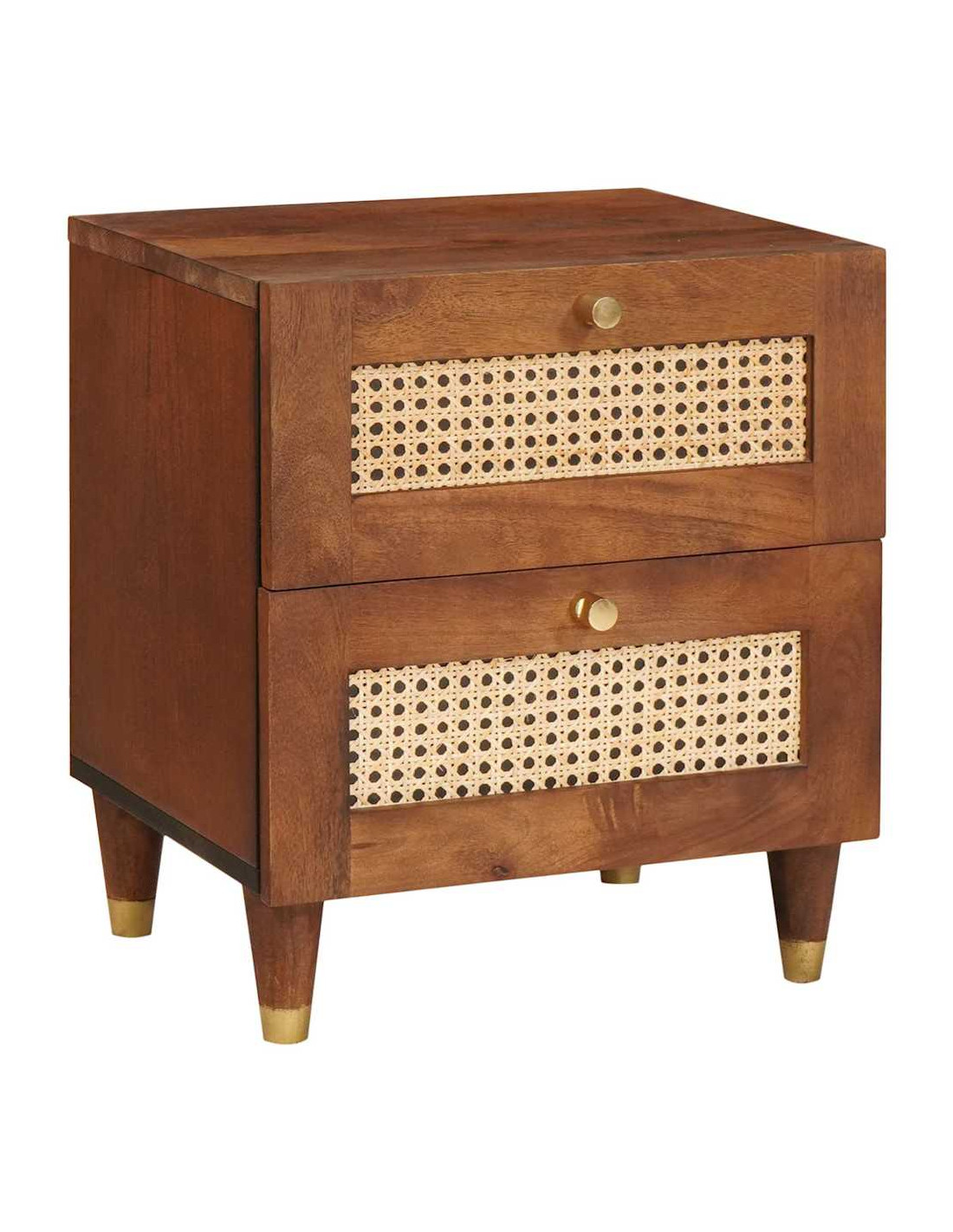 - Materiali: Il comodino è realizzato in legno massello di acacia, noto per la sua solidità e densità, che garantisce durevolezza anche con l'uso quotidiano. Il legno ingegnerizzato completa la solidità offrendo supporto e stabilità, pensato per uno stile di vita moderno. I materiali sono scelti sia per la loro durata che per il valore estetico naturale, che contribuisce allo stile rustico.