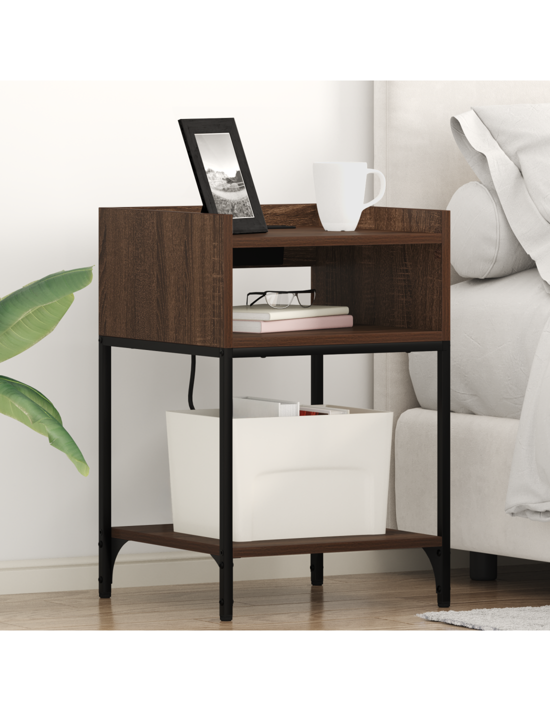 - Materiali eleganti Costruito in legno ingegnerizzato, il comodino porta un tocco rustico alla tua stanza. I robusti componenti in acciaio garantiscono durabilità e un aspetto attraente nel tempo.