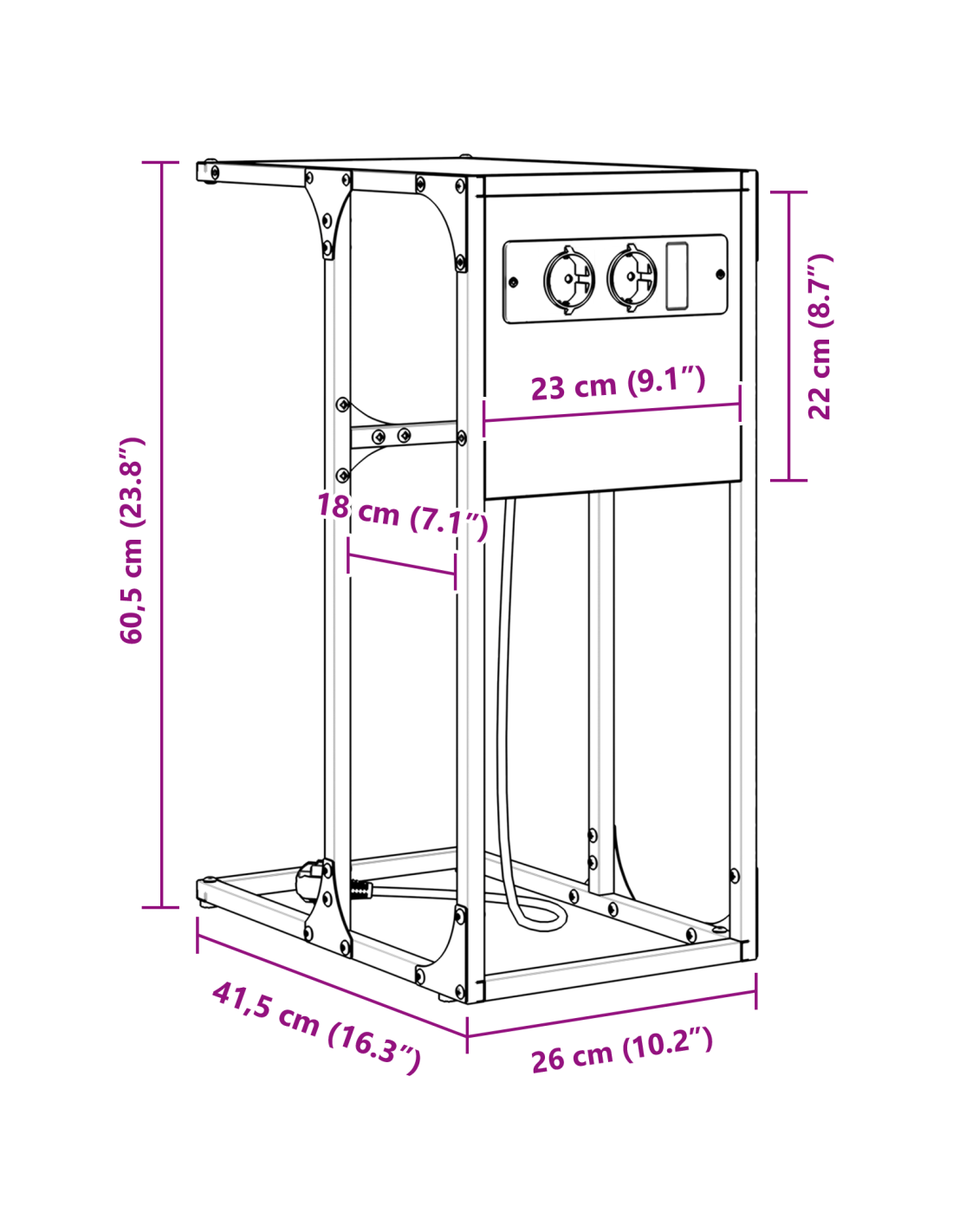 - Dimensioni complessive: 41,5 x 26 x 60,5 cm (L x P x A)