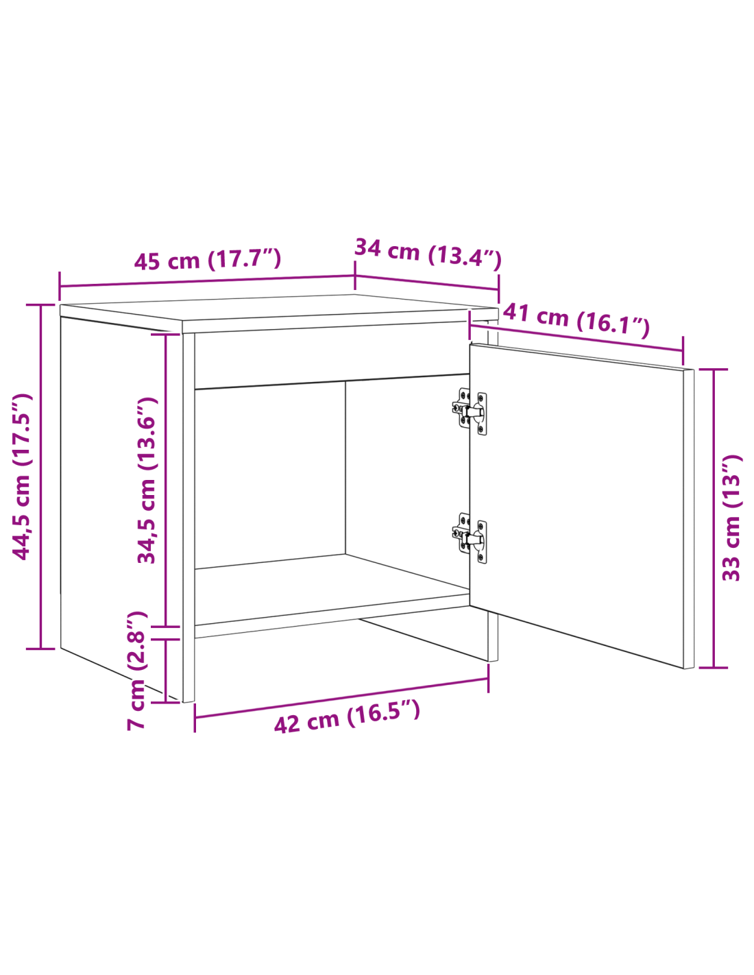- Dimensioni complessive: 45 x 34 x 44,5 cm (L x P x A)