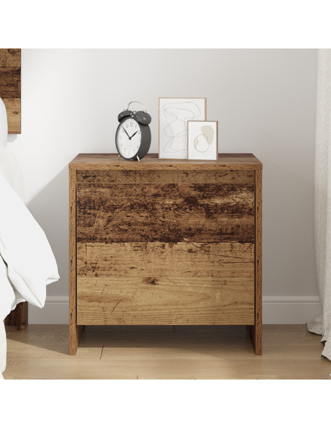 Questo comodino rustico con ripostiglio mostra un design moderno grazie alla sua eleganza semplice e alla versatilità. La sua forma rettangolare e compatta lo fa sembrare un pezzo chic ed efficiente, che si adatta a qualsiasi disposizione della camera da letto. Realizzato in legno ingegnerizzato, ha un bell'aspetto e massimizza lo spazio senza rinunciare allo stile. Perfetto per lampade, sveglie o oggetti personali, si integra facilmente nella decorazione della stanza e offre un prezioso spazio di archiviazione grazie al suo design efficace.