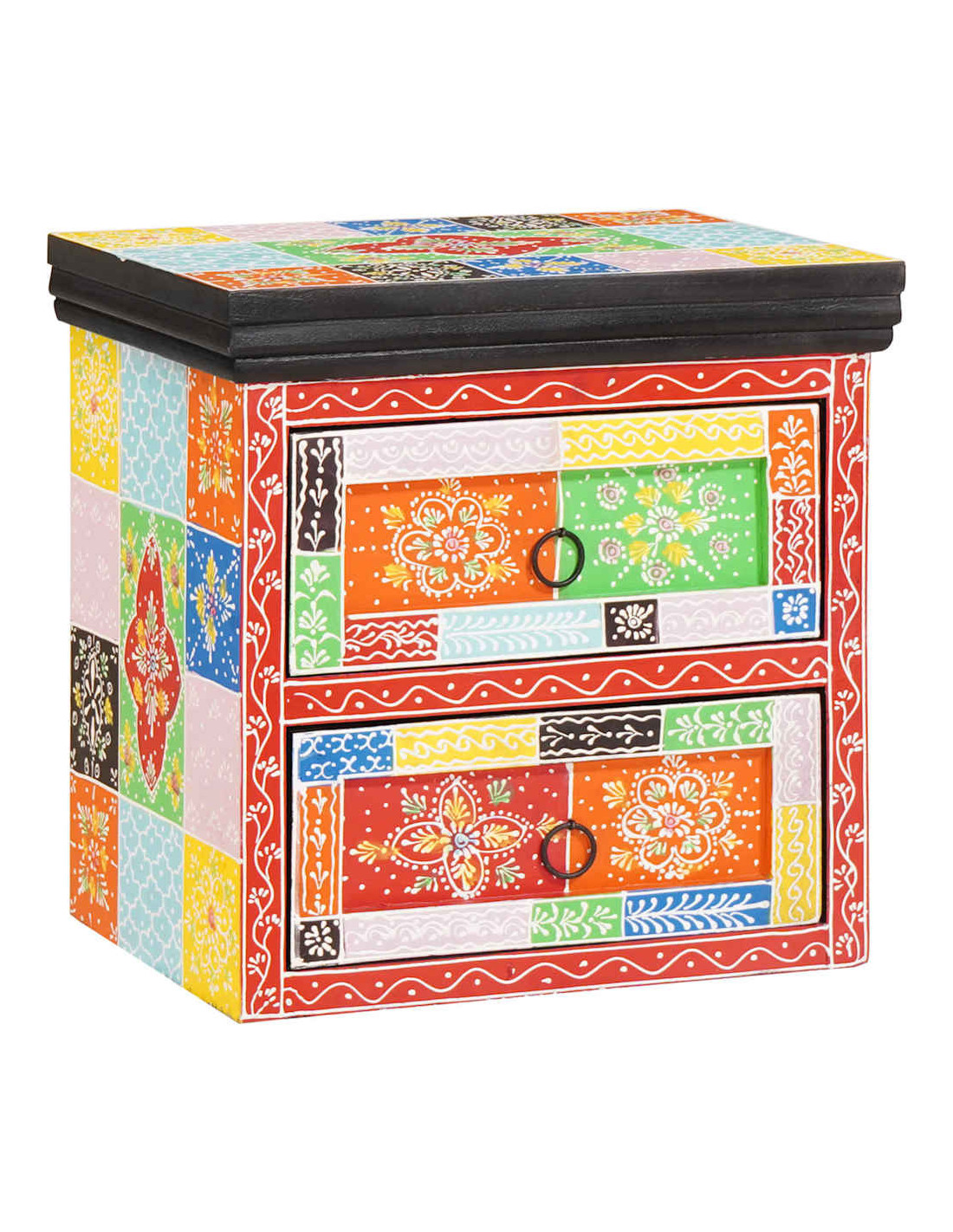 - Design esotico multicolore Porta l'estetica bohémien nella tua camera con questo tavolino da notte. La sua combinazione di colori vivaci e motivi unici dà un tocco speciale al tuo spazio, trasformandolo in un'oasi creativa.