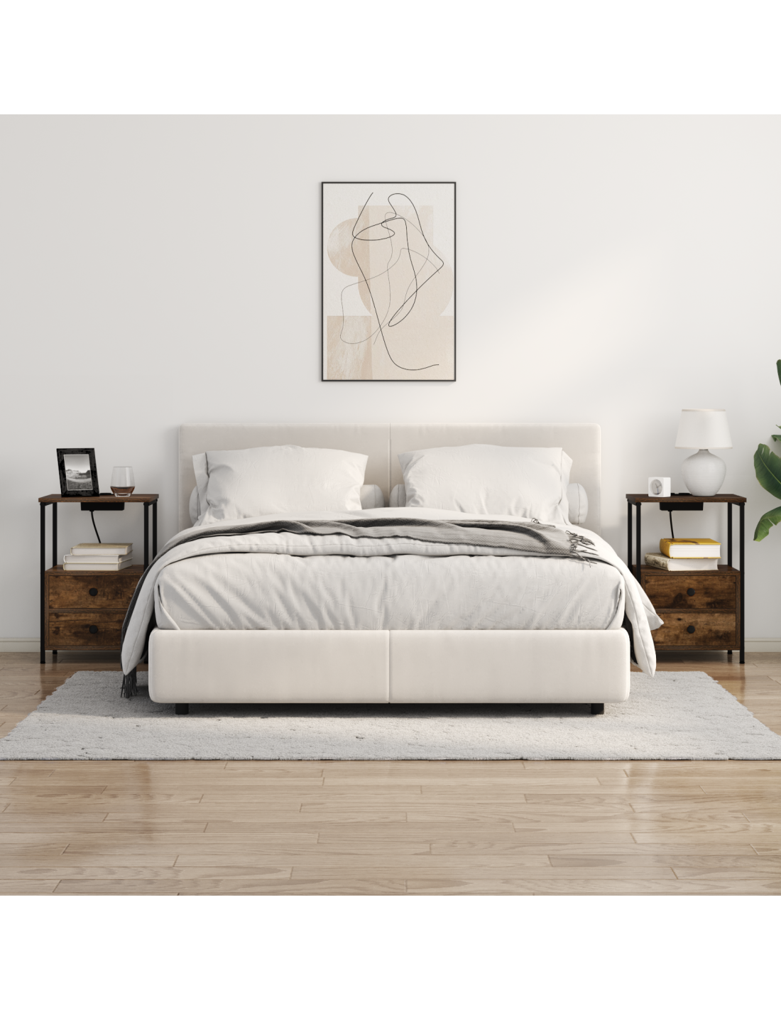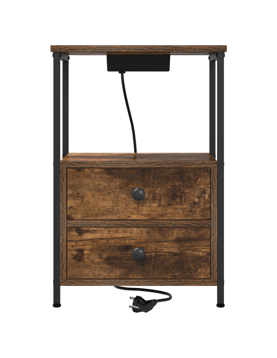 Questo comodino ha una stazione di ricarica integrata, è la combinazione perfetta di praticità e stile rustico, si integra facilmente con qualsiasi arredamento della tua camera da letto. La forma rettangolare è ideale accanto al tuo letto, offre un posto comodo per oggetti come lampade, sveglie o cose personali, mantenendo i tuoi device sempre carichi.