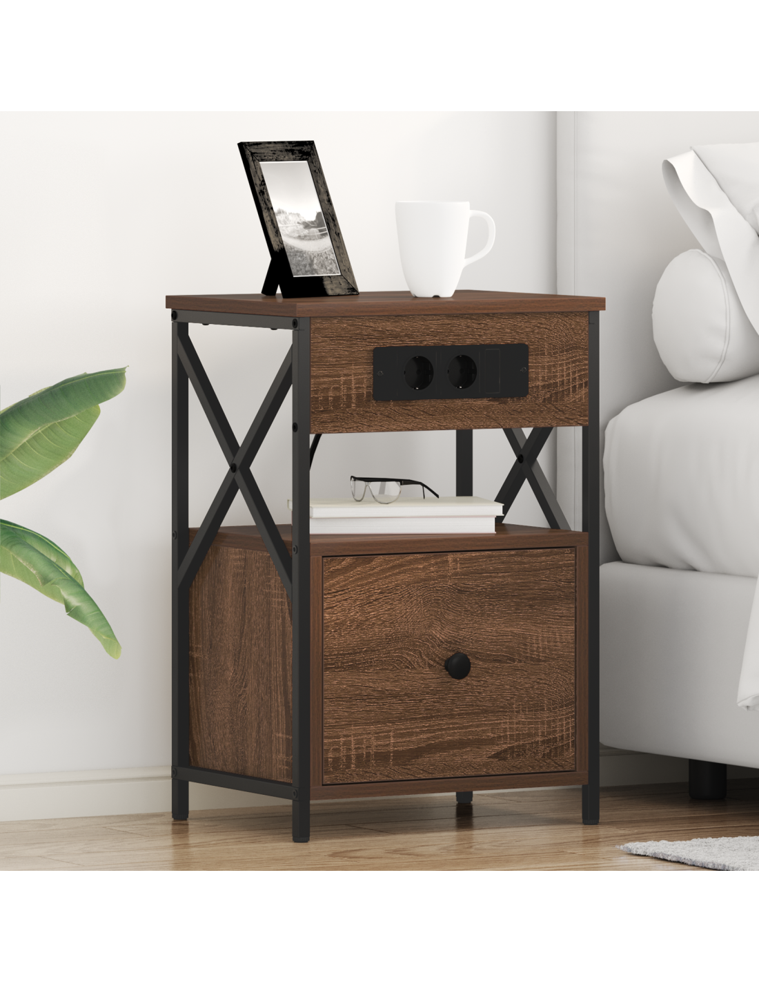 - Materiali: Realizzato in legno ingegnerizzato, il comodino unisce estetica rustica e resistenza. Questo materiale garantisce stabilità e un aspetto caldo che si adatta a vari stili d'interni.