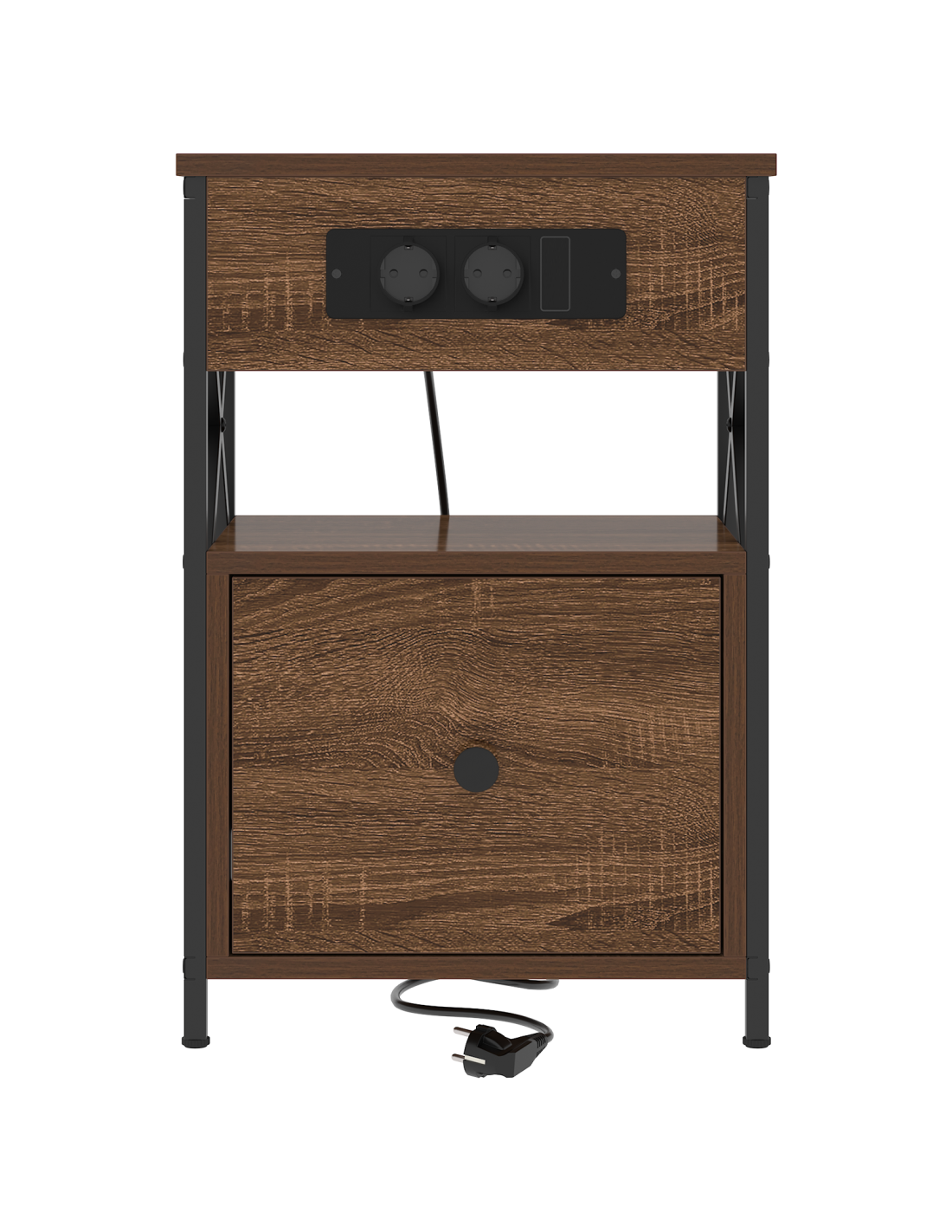 - Componenti inclusi: Con due cassetti spaziosi, offre tanto spazio per i tuoi oggetti notturni: libri, occhiali e altro. Ogni cassetto scorre con facilità. Ha un meccanismo tradizionale per la maniglia, mantenendo il fascino rustico. La stazione di ricarica integrata permette di ricaricare i dispositivi senza creare disordine.