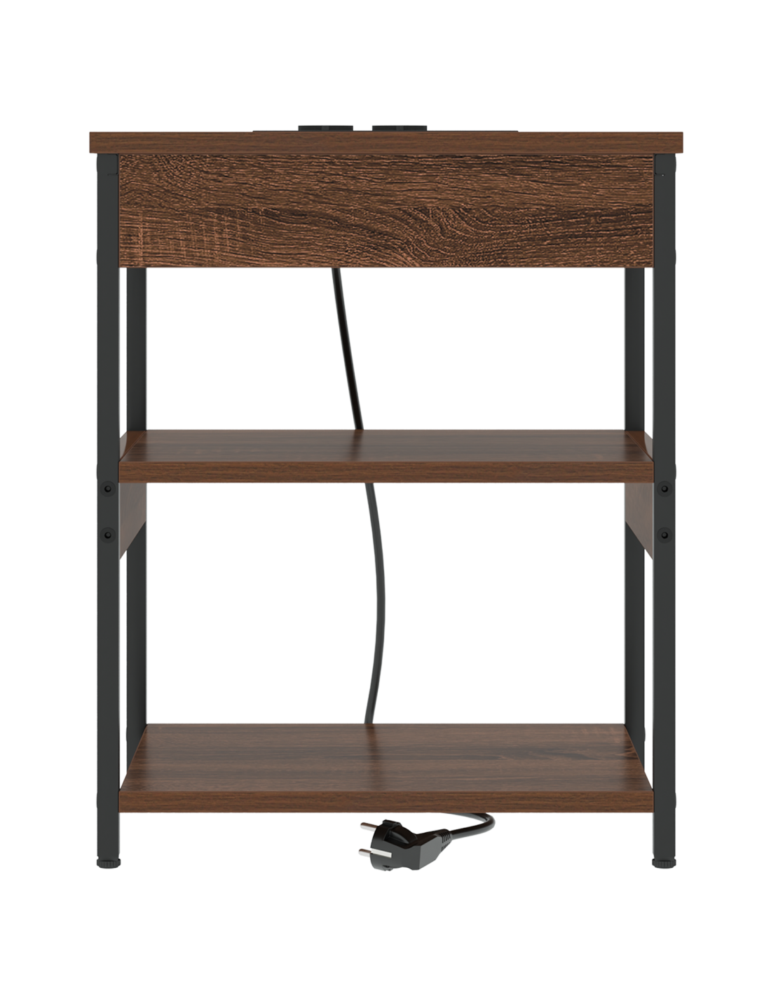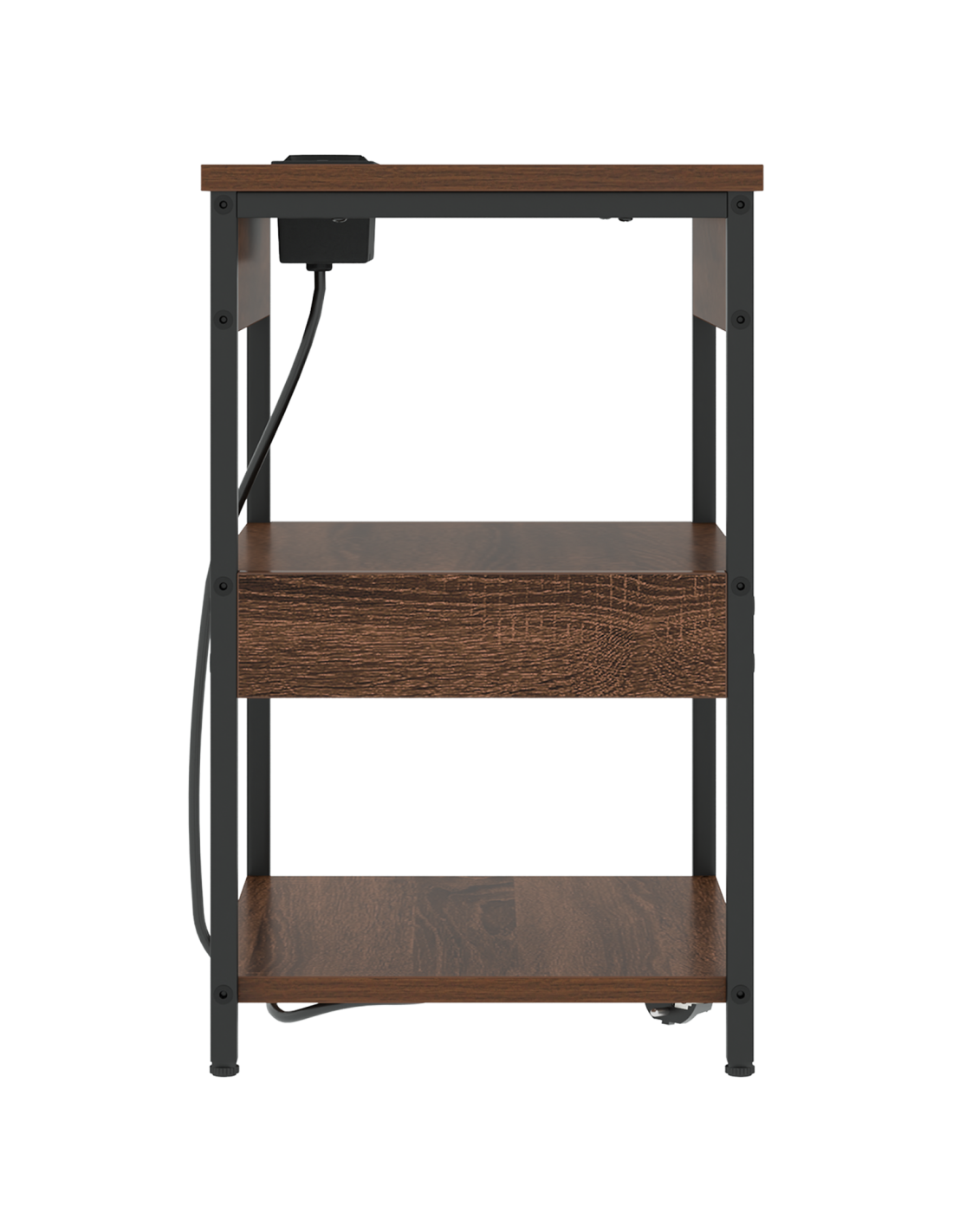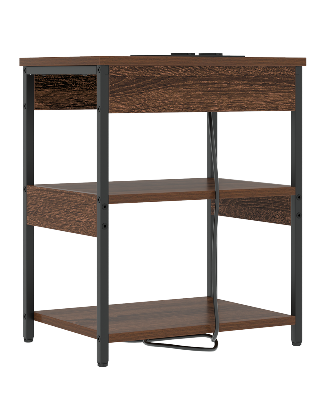 - Materiali: Realizzato in legno ingegnerizzato resistente, questo comodino mescola il calore del legno con la forza dell'acciaio, garantendo durata e manutenzione facile. Ideale per mantenere il tuo spazio ordinato e pratico.