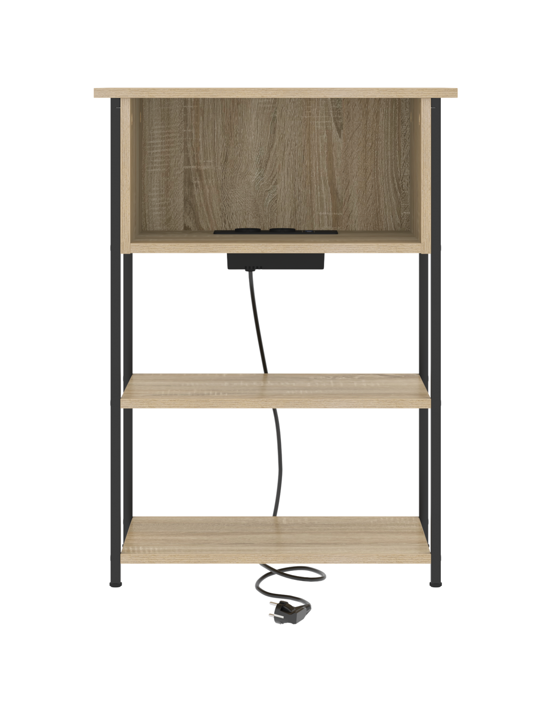 - Struttura in acciaio robusta: Questo comodino ha un telaio in acciaio, che assicura robustezza. La base forte supporta il mobile e si integra bene con il suo aspetto rustico.