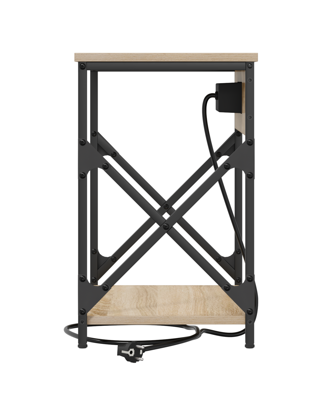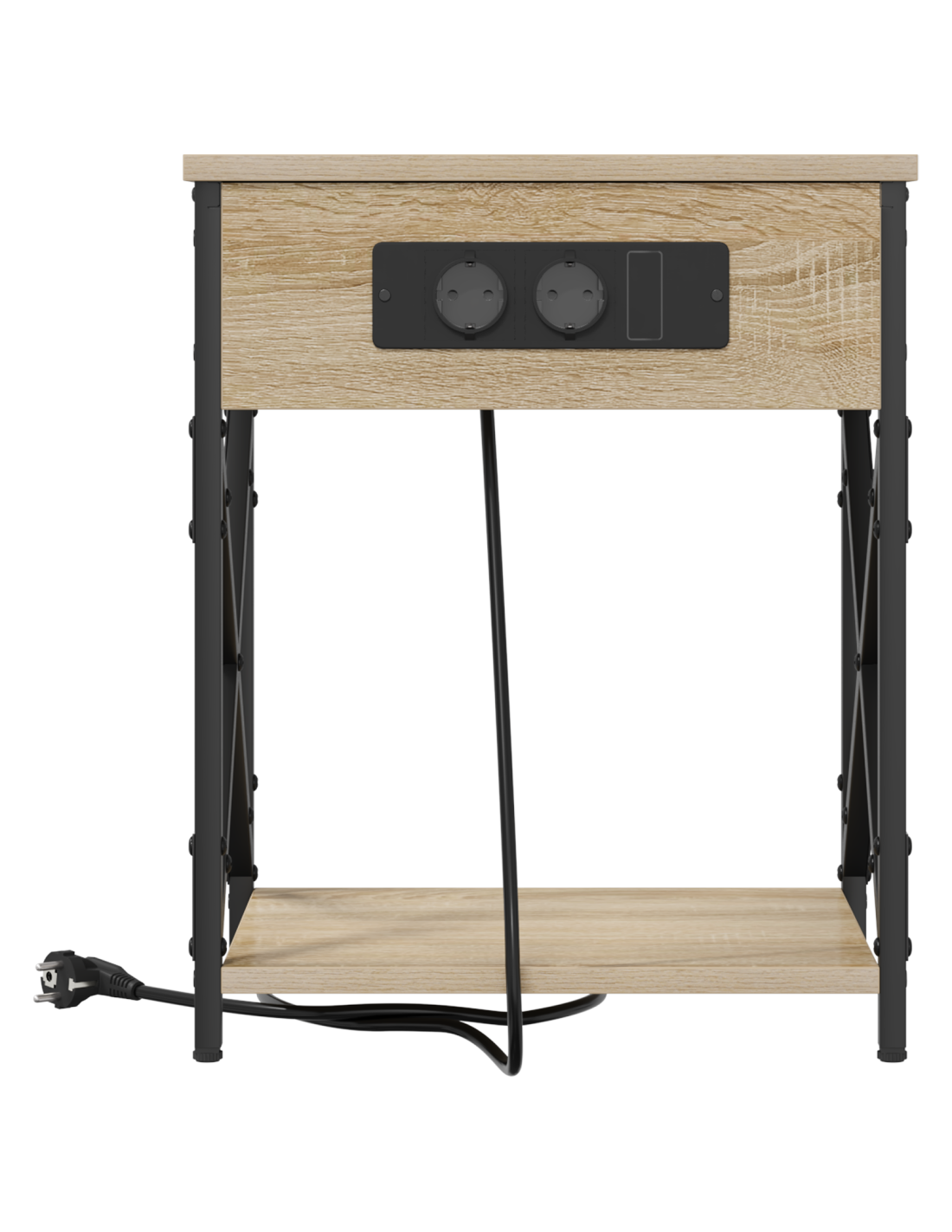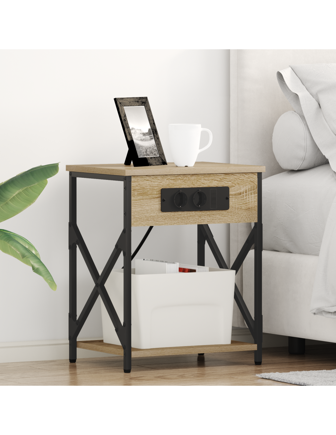 Questo comodino rustico con stazione di ricarica è un mix perfetto di praticità e stile, ideale per ogni camera da letto. La sua dimensione compatta e la forma rettangolare lo rendono perfetto per le esigenze notturne, con un fascino naturale e robusto. Realizzato in legno ingegnerizzato con un telaio in acciaio per garantire durata e praticità, mentre la stazione di ricarica integrata e gli scompartimenti rendono la vita moderna più semplice.