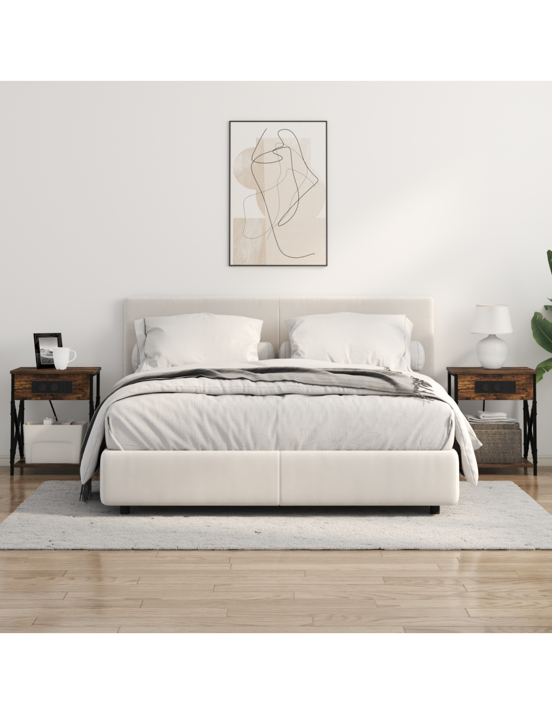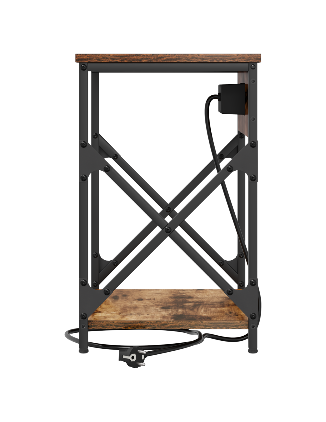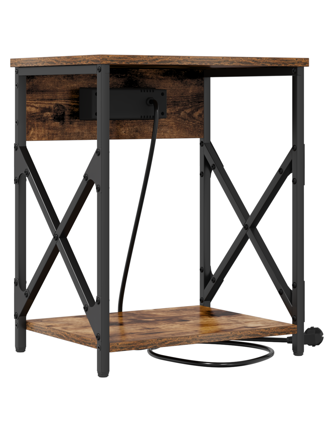 Questo comodino rustico con stazione di ricarica è un mix perfetto di praticità e stile, ideale per ogni camera da letto. La sua dimensione compatta e la forma rettangolare lo rendono perfetto per le esigenze notturne, con un fascino naturale e robusto. Realizzato in legno ingegnerizzato con un telaio in acciaio per garantire durata e praticità, mentre la stazione di ricarica integrata e gli scompartimenti rendono la vita moderna più semplice.