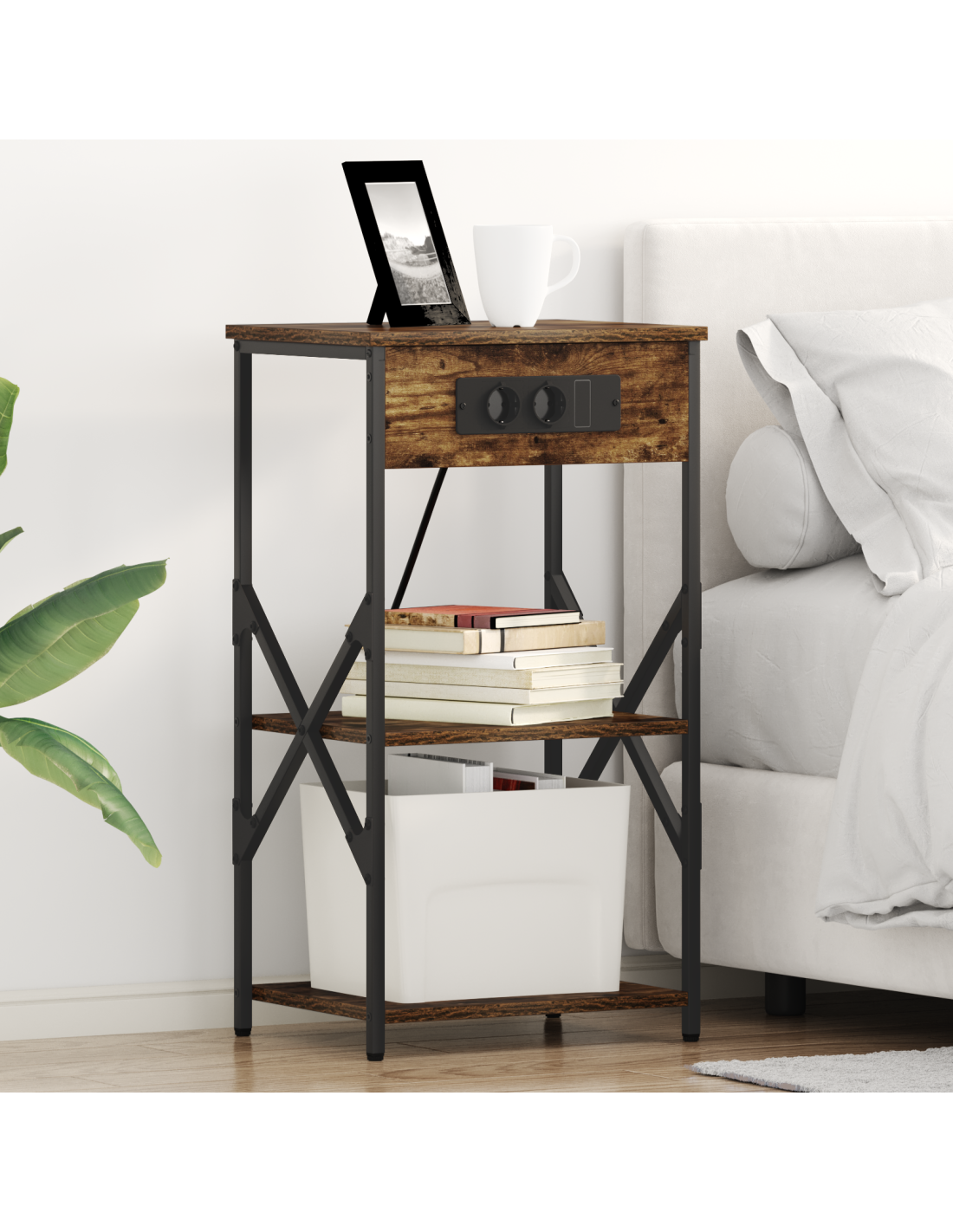 - Componenti Inclusi: Questo comodino è progettato per essere funzionale e ha scaffali che offrono ampio spazio per tutte le tue necessità notturne. Ha anche una stazione di ricarica integrata, così puoi caricare i tuoi dispositivi comodamente dal comodino.