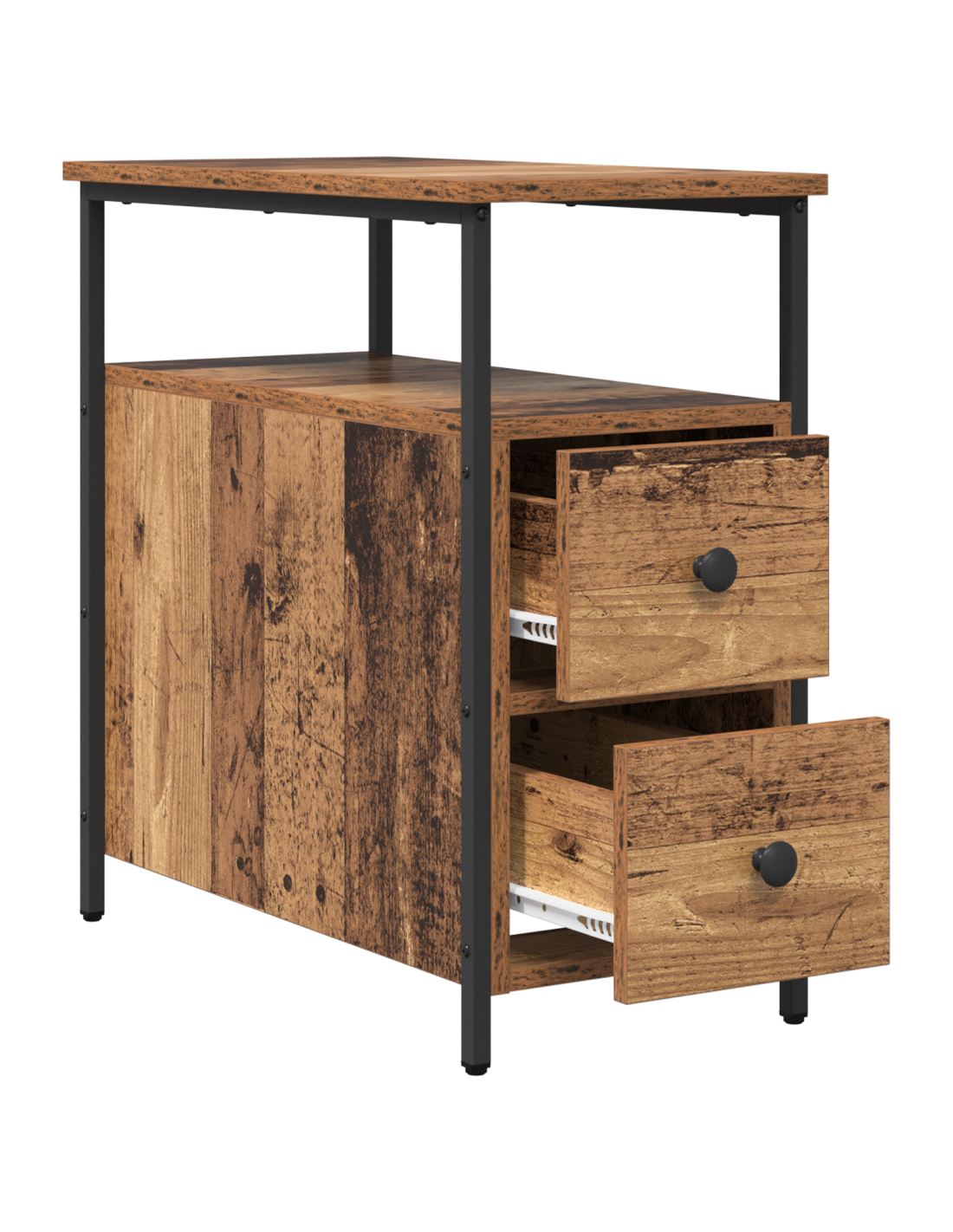 - Magazzino Pratico Con mensole e un cassetto, questo comodino offre tanto spazio per riporre in ordine i tuoi essenziali. Il legno ingegnerizzato garantisce che sia abbastanza resistente per libri, gadget e altri oggetti personali, rendendo tutto facilmente accessibile accanto al letto.