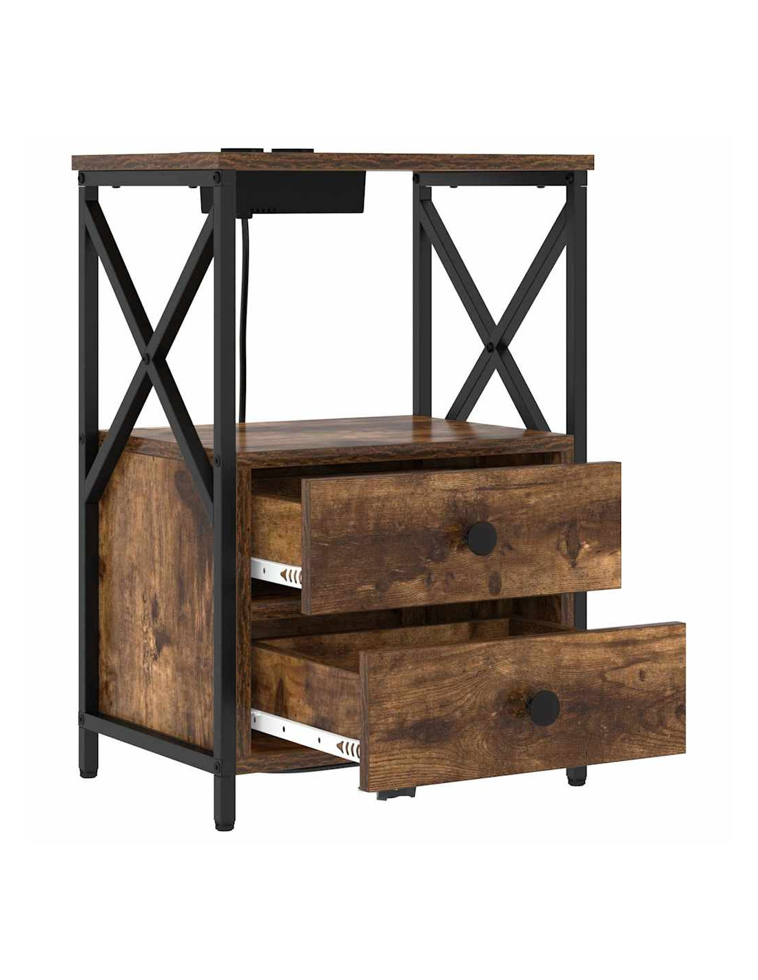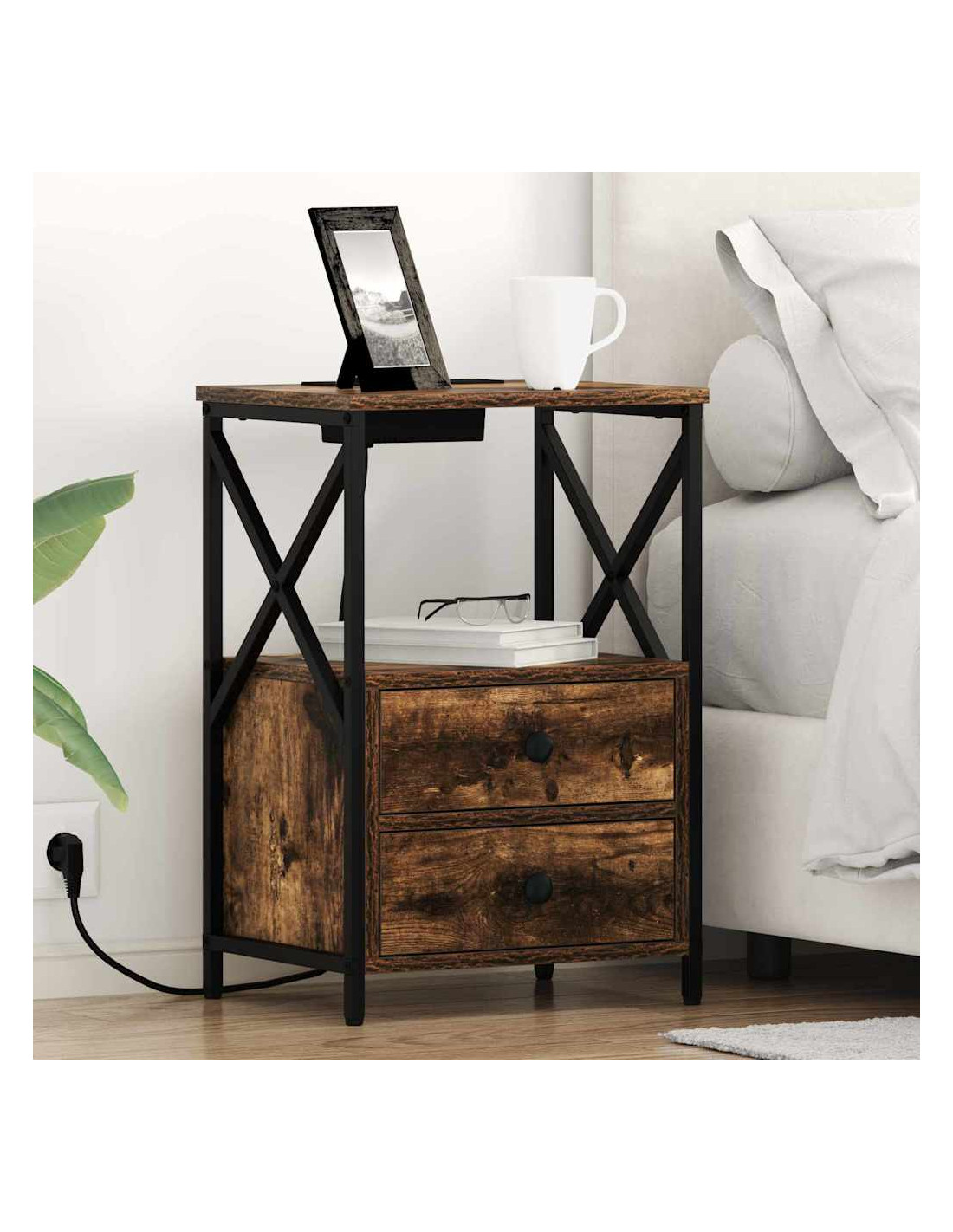 Questo comodino cool unisce praticità e fascino rustico, ed è l'ideale per ogni camera da letto. La forma rettangolare compattissima si infila facilmente accanto al tuo letto, offrendo uno spazio perfetto per tenere a portata di mano le cose essenziali della notte. Con un design robusto, aggiunge un tocco di eleganza easy alla tua stanza, ospitando lampade e oggetti personali mentre offre anche una stazione di ricarica per la comodità moderna.