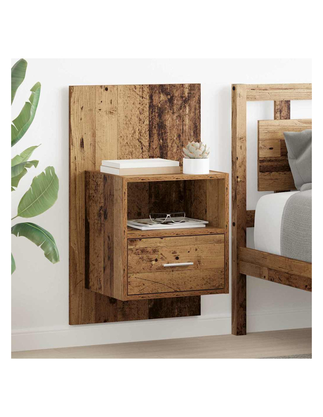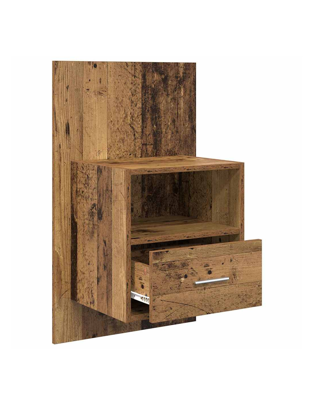 - Caratteristiche / Funzione / Design: Unisce stile rustico e funzionalità contemporanea, offrendo uno stoccaggio semplice ma esteticamente gradevole. Il cassetto si apre facilmente, e il design sospeso aggiunge modernità ai tradizionali comodini.