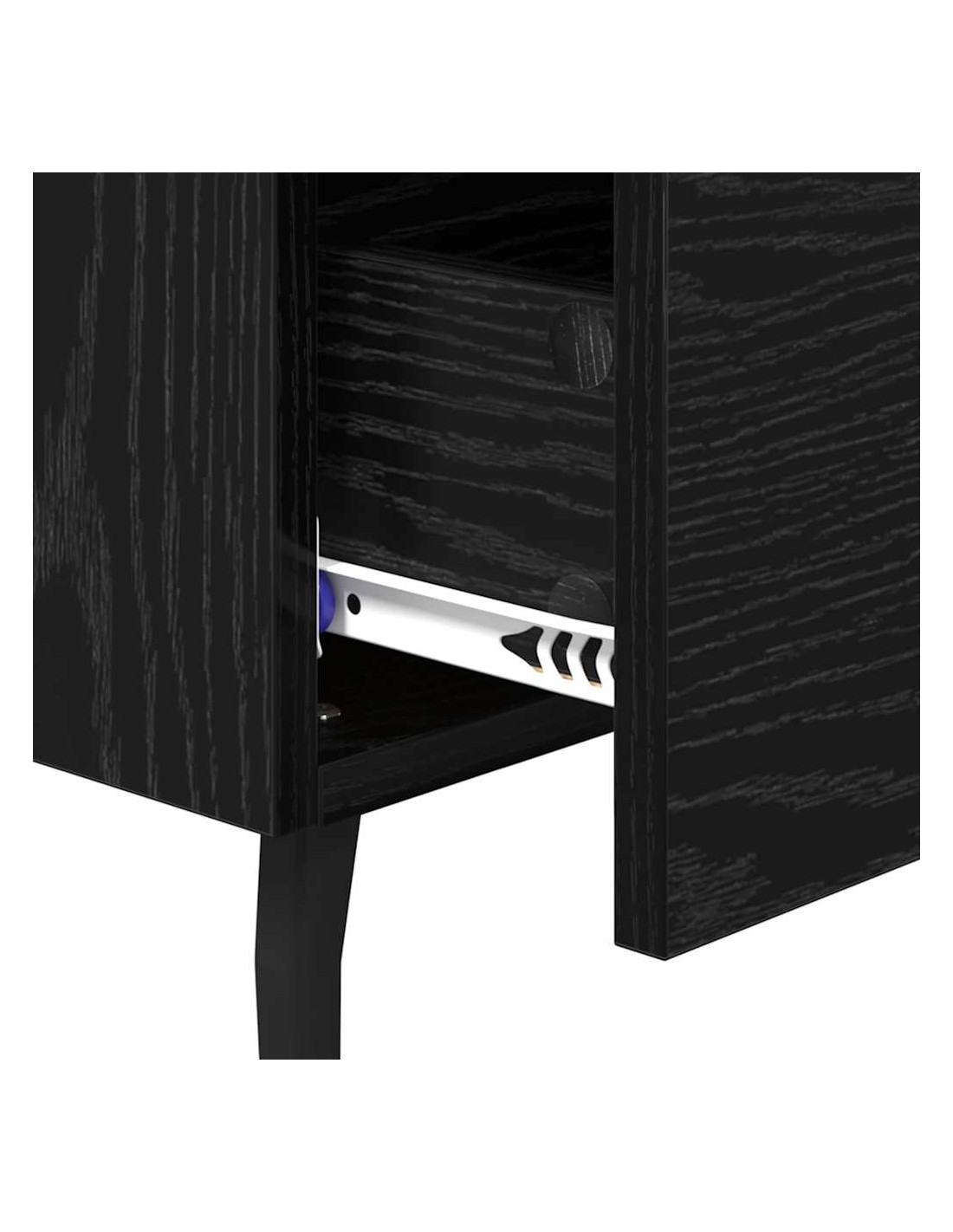 - Gambe affusolate eleganti I piedi in acciaio affusolato sollevano il comodino dal pavimento, evitando la polvere e dando un'aria chic. La finitura nera opaca migliora l'aspetto generale e offre stabilità. Questa costruzione non solo è bella ma assicura anche una base solida.