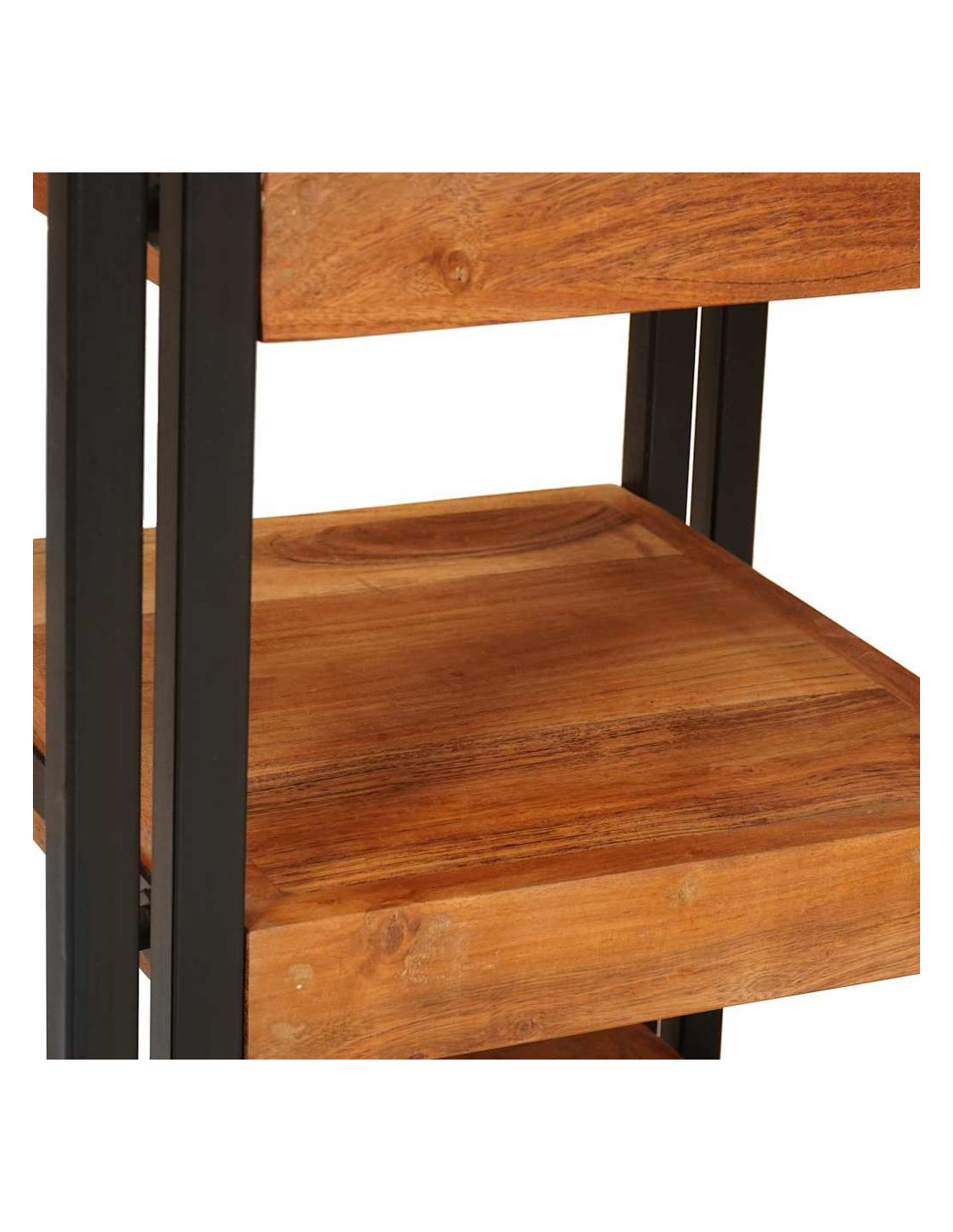 - Artigianato di Qualità: Questo comodino è fatto con materiali resistenti, ha un piano in legno solido e gambe in metallo robuste. I colori marrone e nero non solo sono belli, ma assicurano anche che duri nel tempo.