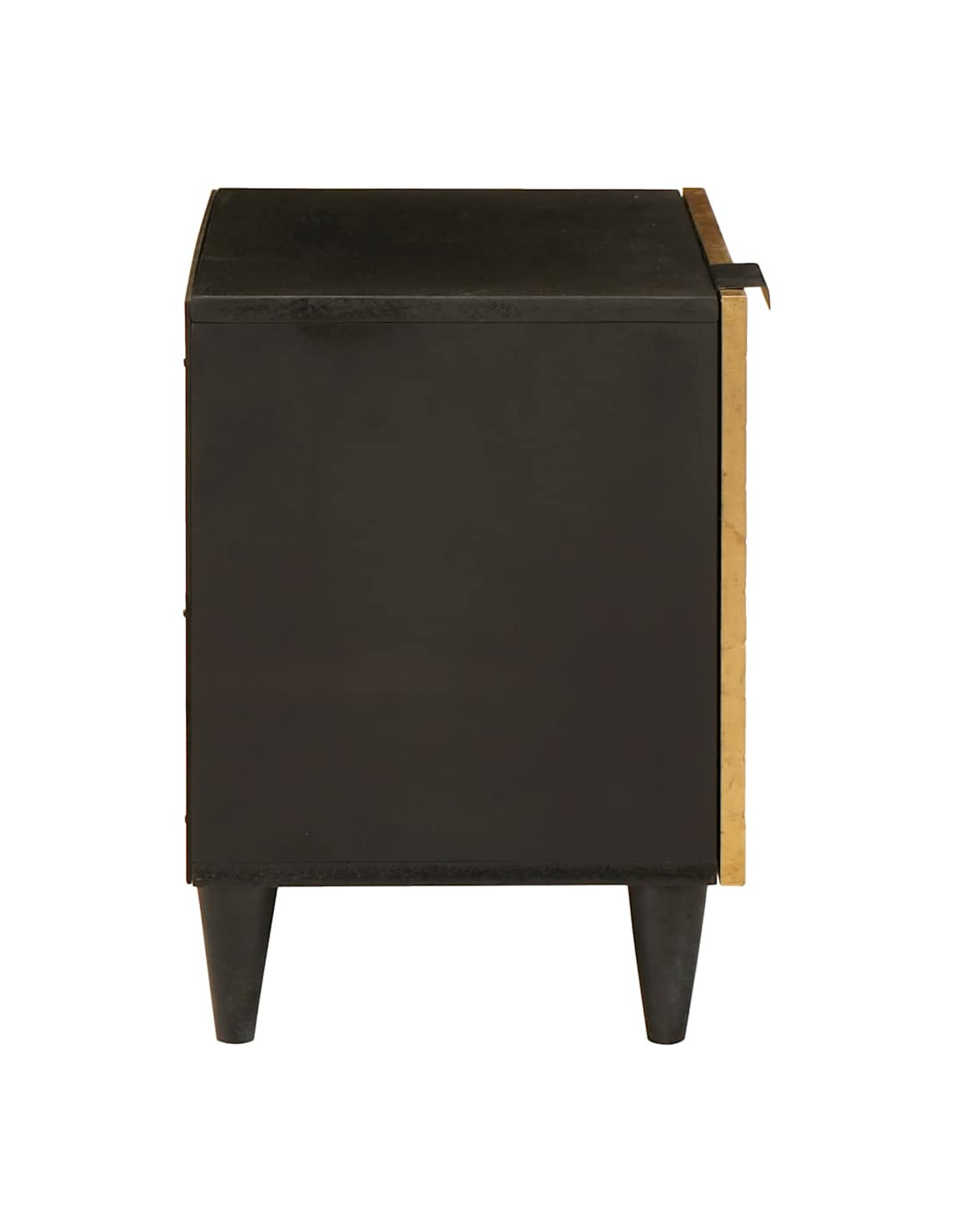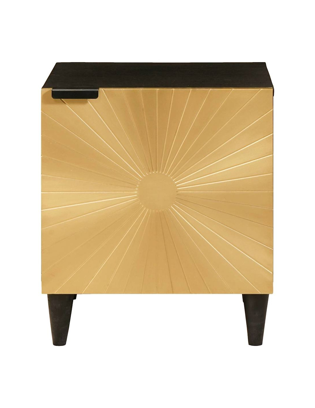 Questo comodino in legno è un'ottima scelta per ogni camera da letto, mescolando stile e praticità. La sua struttura moderna, con decorazioni minimaliste e una raffinata combinazione di colori neri e dorati, si integra perfettamente a diversi arredamenti. Progettato per essere comodo, questo tavolo funziona sia come elemento decorativo che come utile spazio di stoccaggio. Le dimensioni e la forma lo rendono un ottimo compagno da letto, permettendoti di avere lampade, sveglie e altri oggetti a portata di mano.