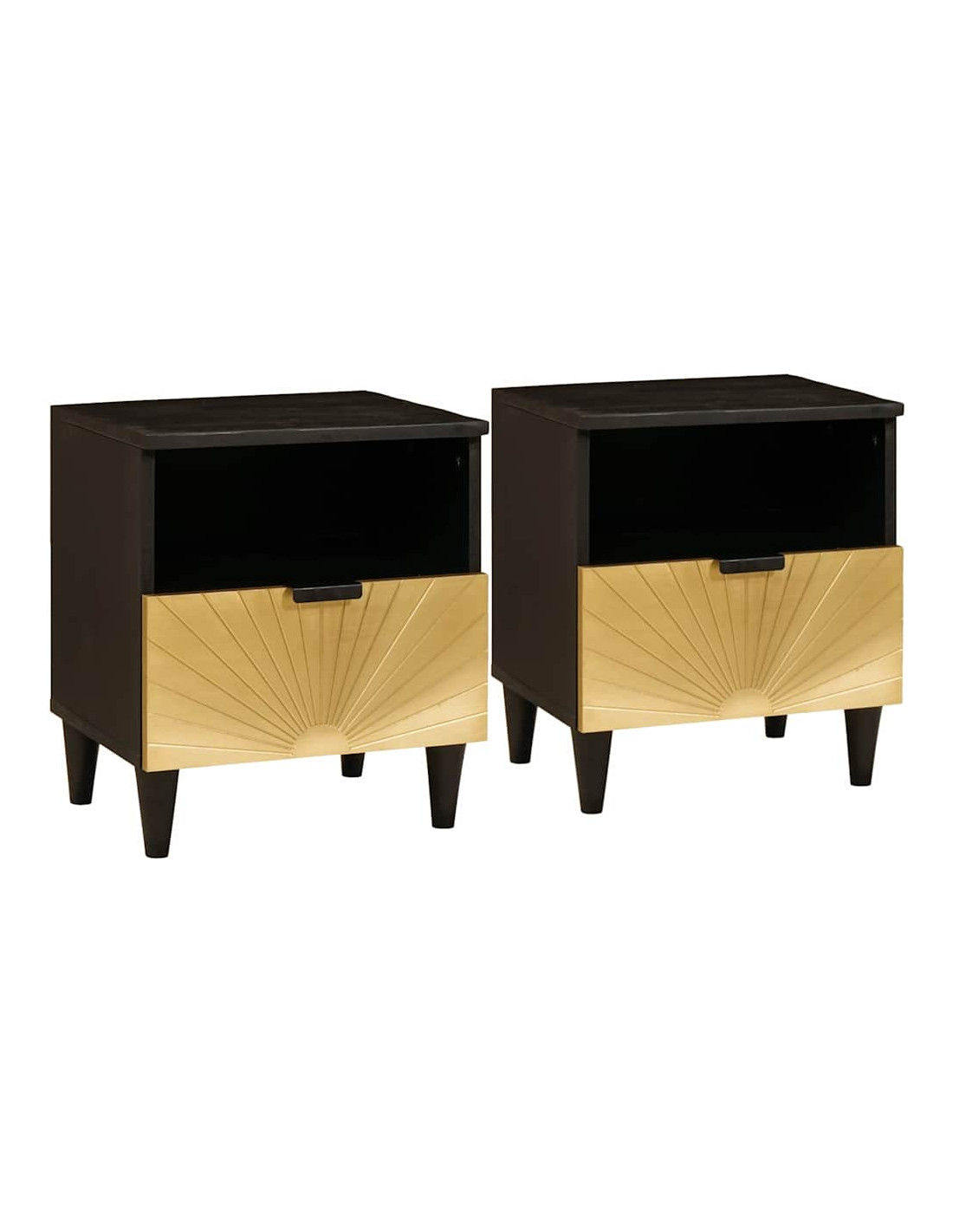 Questo comodino elegante è un'ottima scelta per qualsiasi camera da letto contemporanea. È ben costruito con linee pulite e una palette di colori nera e dorata che si abbina a stili minimalisti o eccentrici. Fatto in legno massello di mango e legno ingegnerizzato, è progettato per durare mantenendo un look chic.