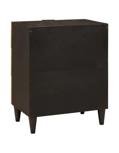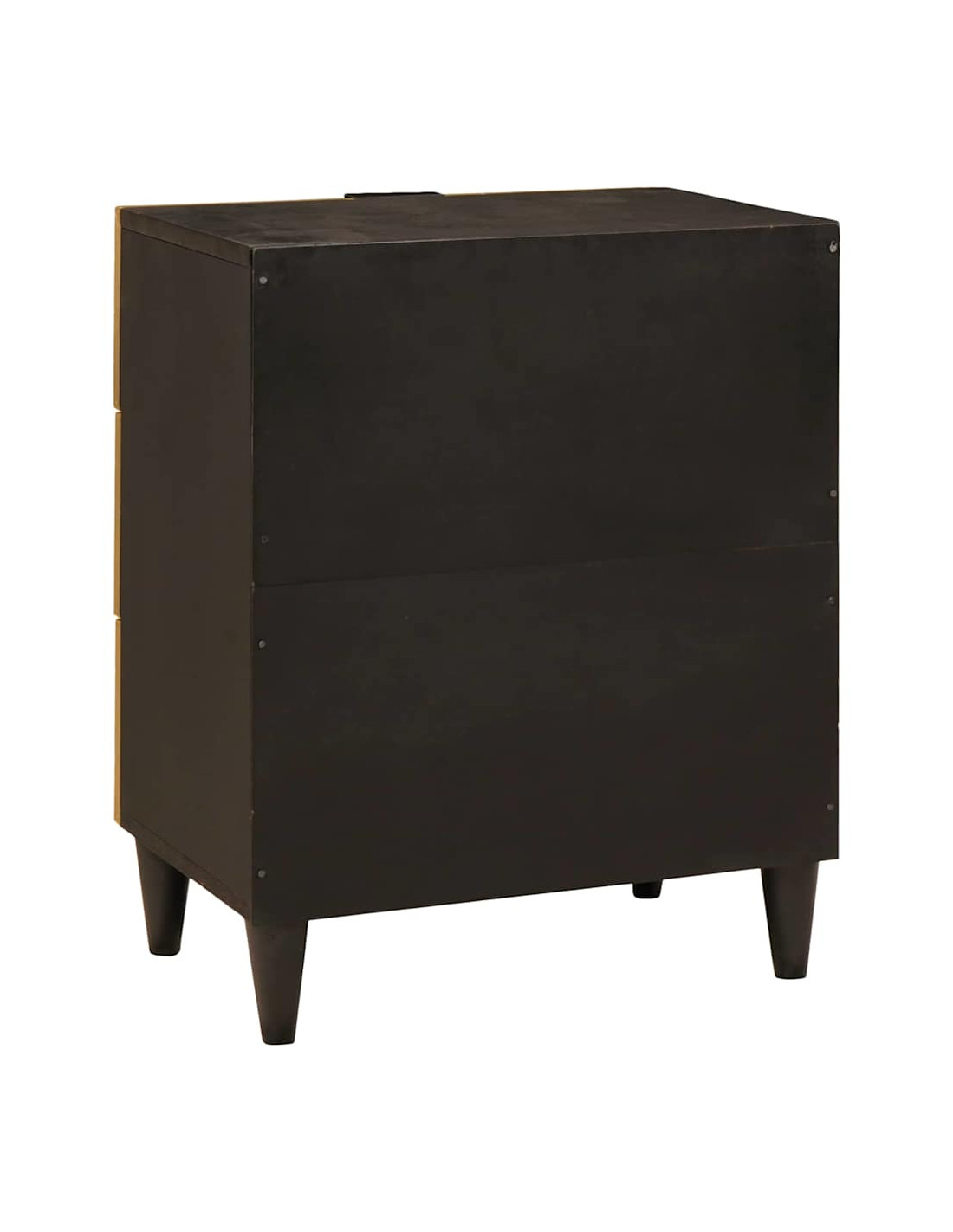 - Materiali Resistenti: Questo comodino è fatto in legno massello di mango e legno ingegnerizzato, noti per la loro durata. Il legno massello mantiene robustezza e aspetto, mentre il legno ingegnerizzato lo rende leggero e stabile.