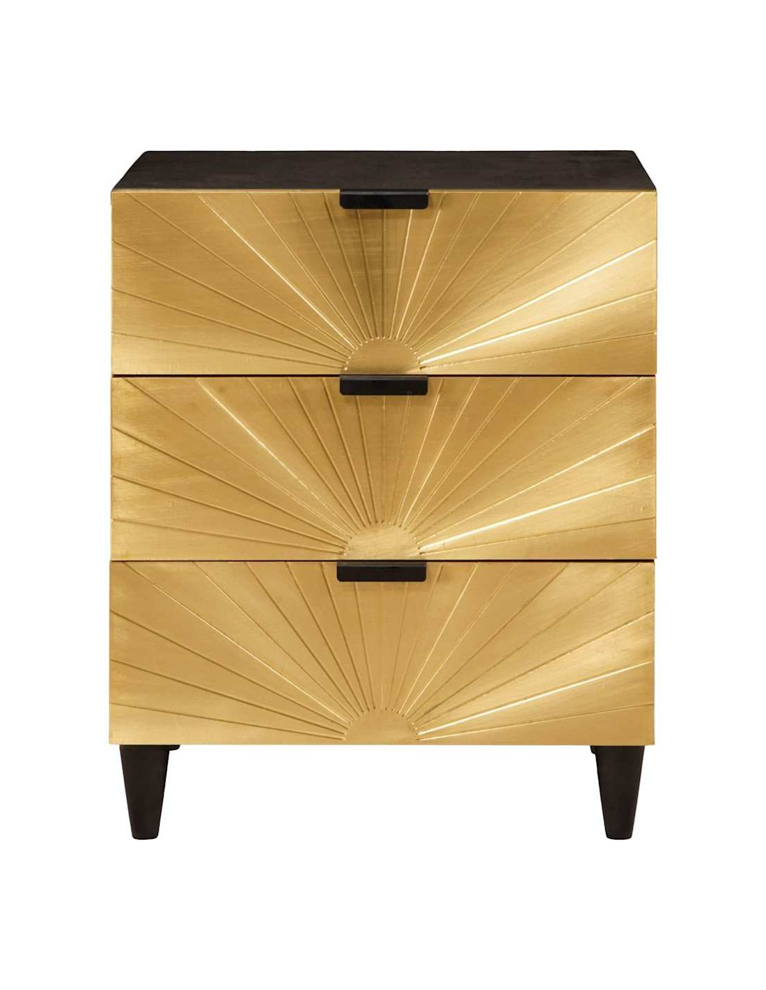 Questo comodino elegante aggiunge un tocco di stile moderno a ogni camera da letto. Con la finitura nera e dorata, fa una bella figura. Le linee pulite e il look minimalista mostrano un design contemporaneo. È perfetto per tenere i tuoi essenziali a portata di mano e si integra bene con la vita urbana. La superficie liscia è anche ottima per esporre i tuoi oggetti personali o una lampada da comodino carina.