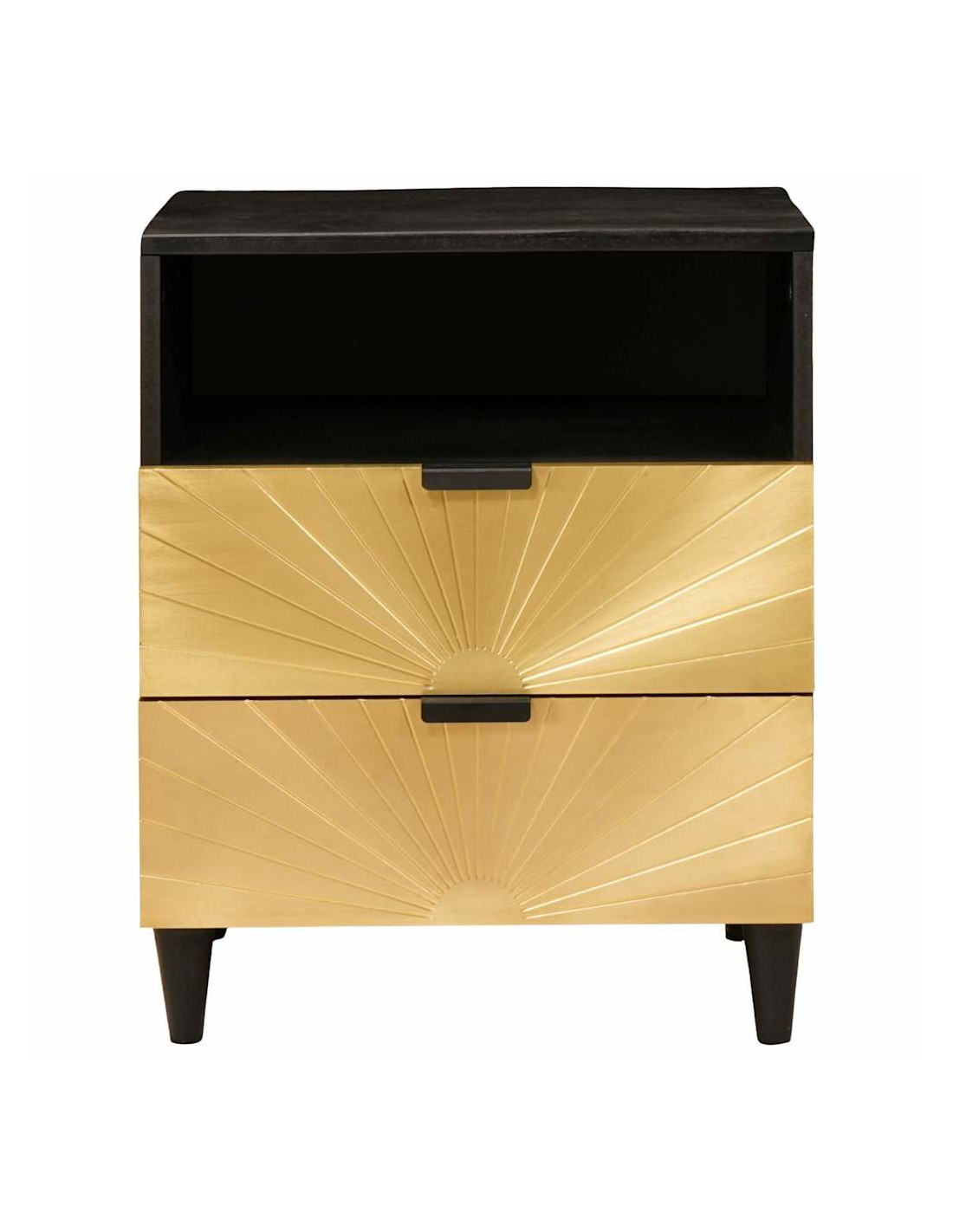 Questo comodino in legno fa davvero colpo in ogni camera con il suo look elegante e pratico. La forma rettangolare e i bei colori nero e oro gli danno un tocco di classe. Proprio delle giuste dimensioni, è perfetto per lampade, sveglie o libri. Con le sue linee pulite e lo stile minimal, trasforma la tua camera da letto in un rifugio moderno.
