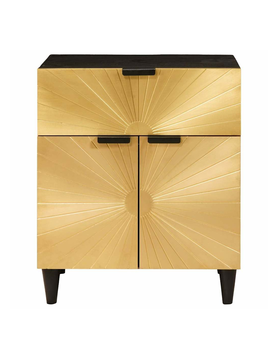 Questo comodino elegante si sposa bene con camere da letto moderne, grazie alle sue linee pulite e al contrasto tra il nero e l'oro. Non è solo bello da vedere; è anche molto pratico! La sua forma rettangolare e le dimensioni compatte lo rendono perfetto accanto al letto, dando spazio ai tuoi oggetti essenziali come lampade e libri. Il telaio nero e i frontali dorati catturano l'attenzione, aggiungendo un tocco di eleganza e rimanendo super utile.