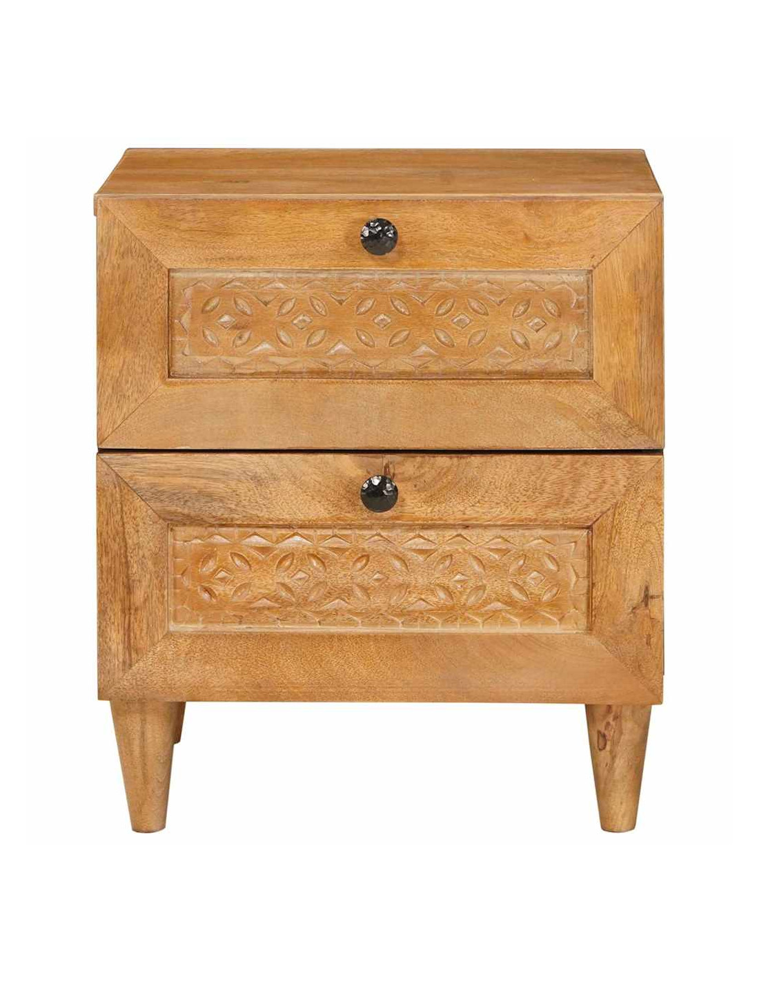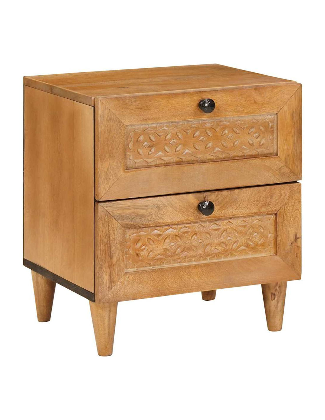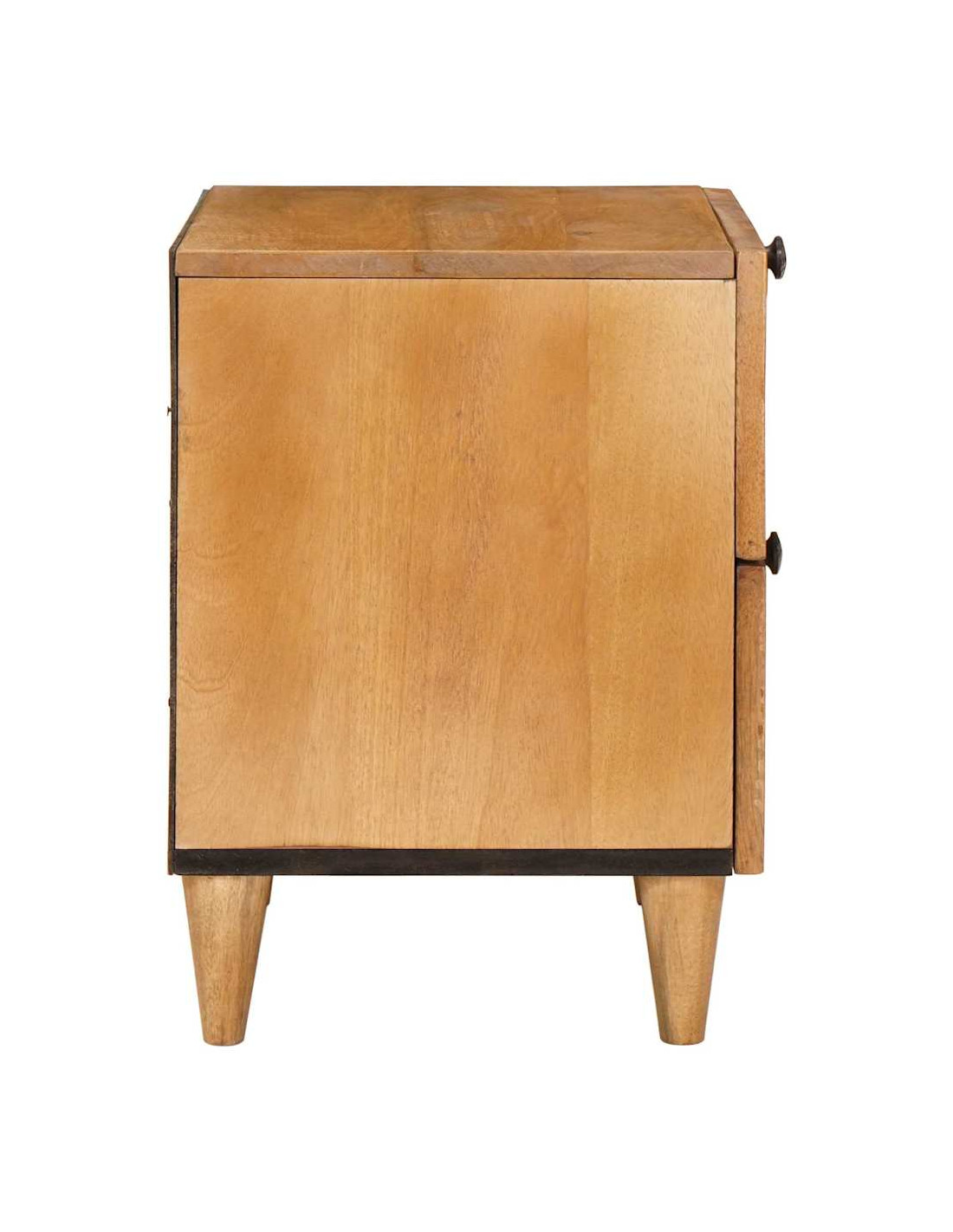 - Materiale: Fatto in legno massello di mango, questo comodino è super stabile, perfetto per l'uso quotidiano. Le venature particolari fanno di ogni pezzo un oggetto unico, dando un bel fascino rustico che si adatta a diversi stili di stanza.