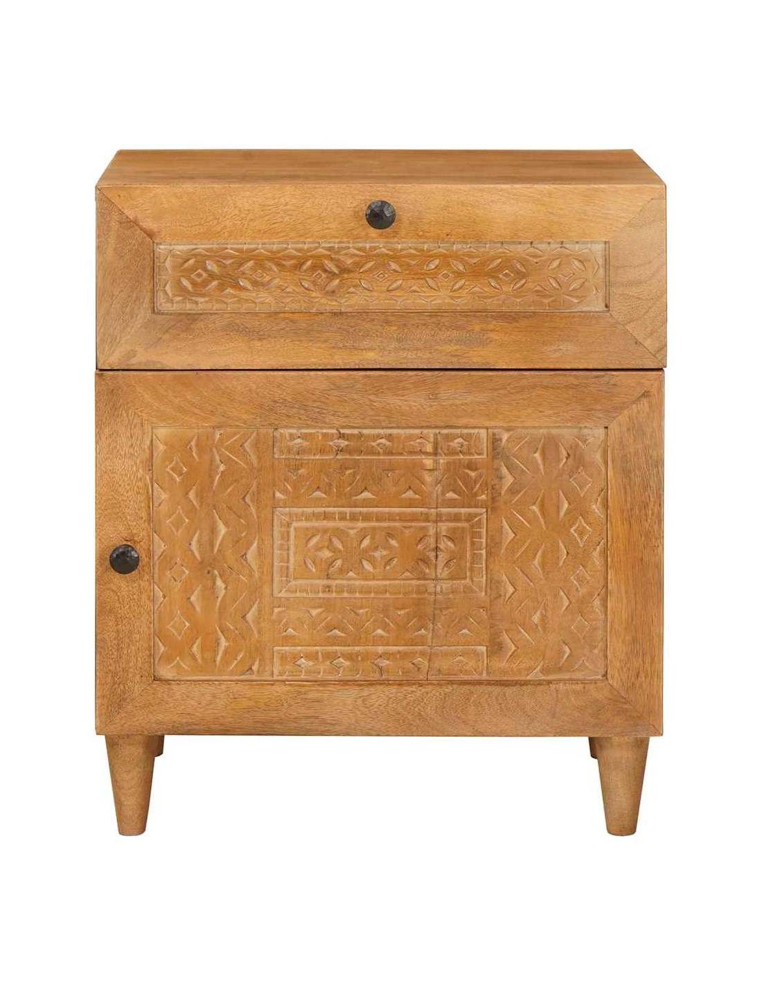 - Costruzione in Legno Massello di Mango Questo comodino è fatto di legno massello di mango, noto per la sua robustezza e durata. Il suo aspetto naturale gli dà un fascino senza tempo e la superficie liscia aggiunge un tocco di eleganza, assicurando che resista alla prova del tempo. Puoi contare su di lui come un buon investimento che porta eleganza e calore nel tuo spazio.