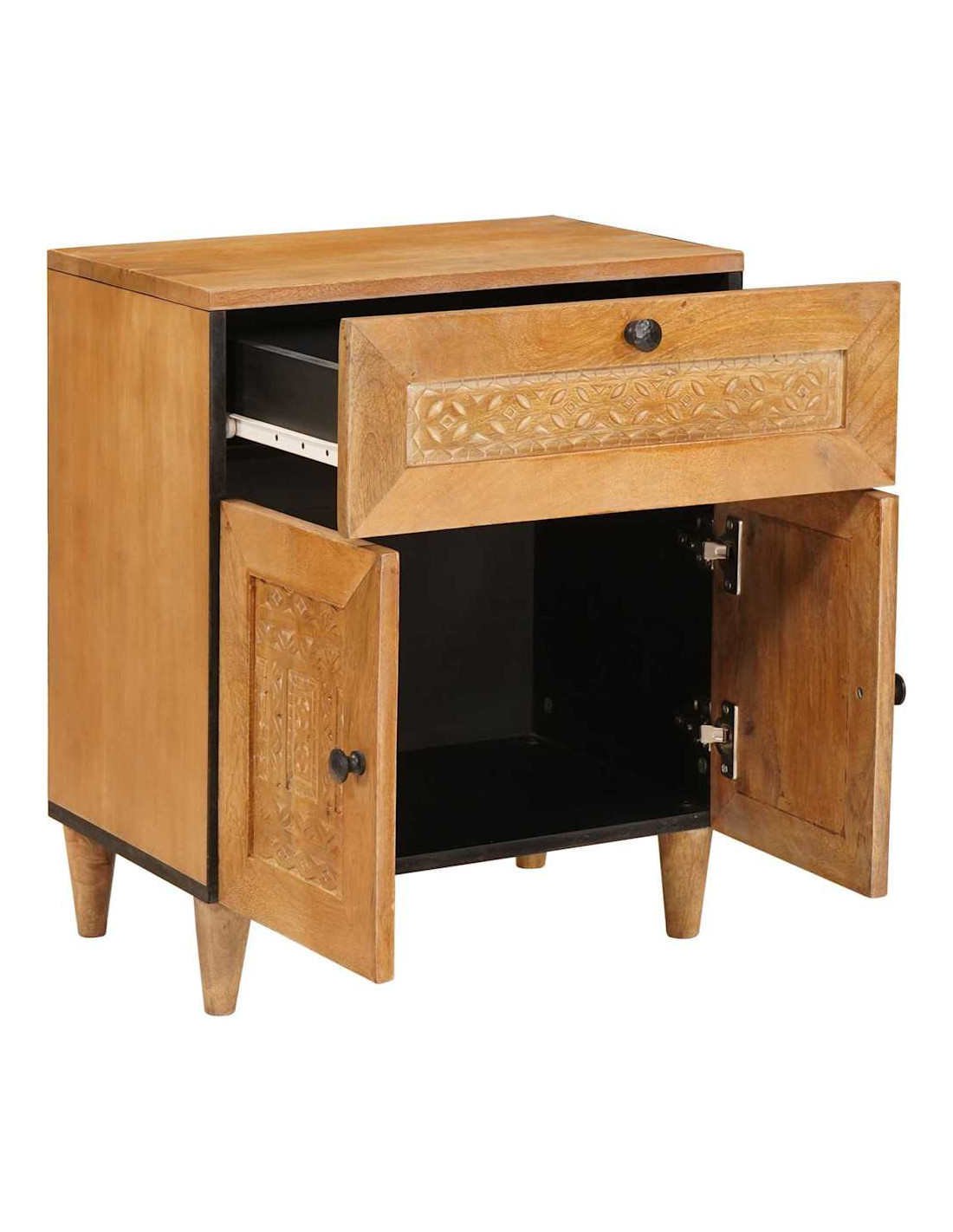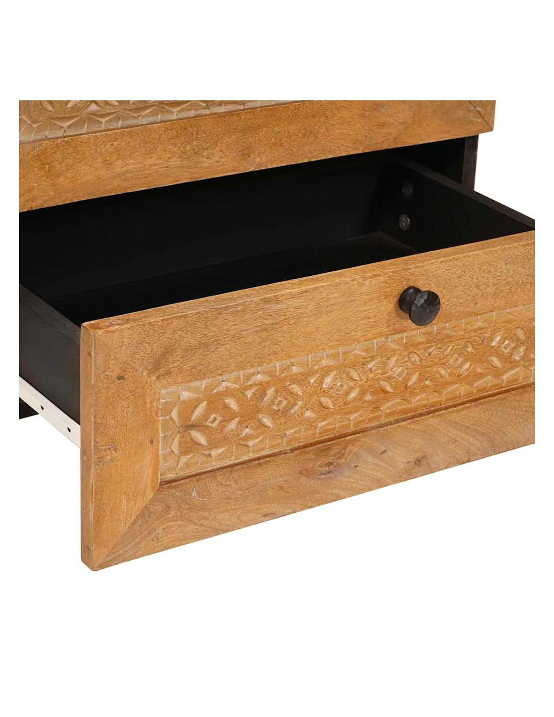 - Opzioni di Stoccaggio Diverse: Con cassetti e ripiani spaziosi in legno di mango, questo comodino ti offre tanto spazio per riporre tutto, mantenendo l'ordine e tutto a portata di mano.