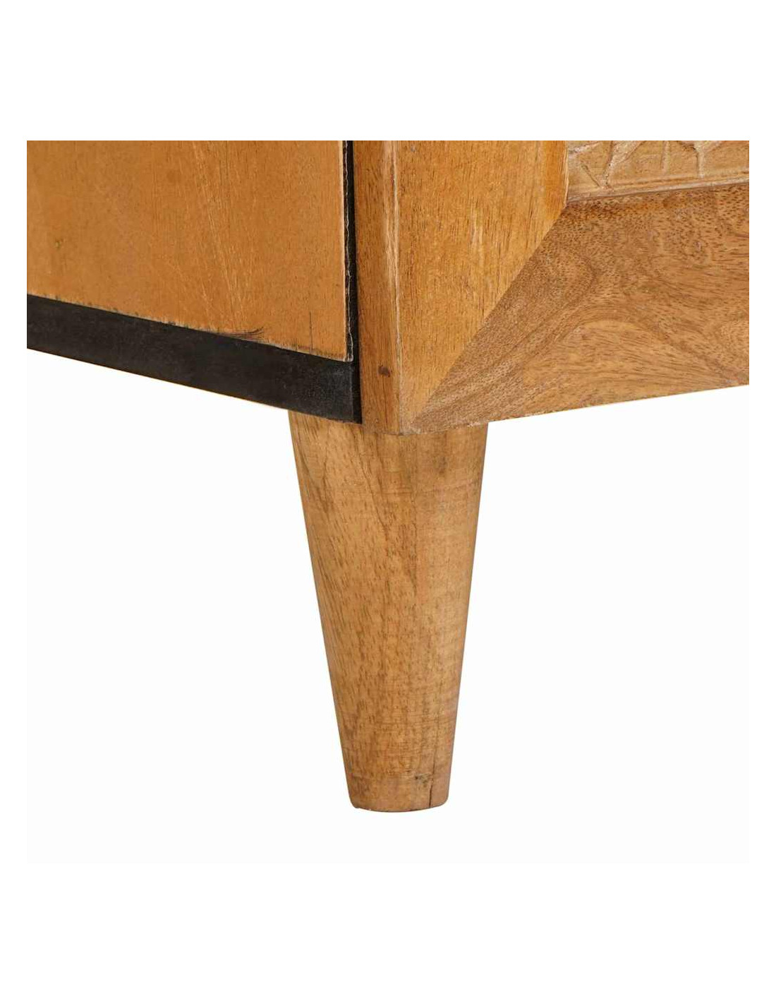 Questo comodino unisce un look tradizionale e una funzionalità top, perfetto per aggiungere un tocco classico a qualsiasi soggiorno o camera da letto. La superficie liscia e la costruzione robusta in legno di mango non solo sono belle, ma offrono anche spazio pratico per i tuoi oggetti o decorazioni.