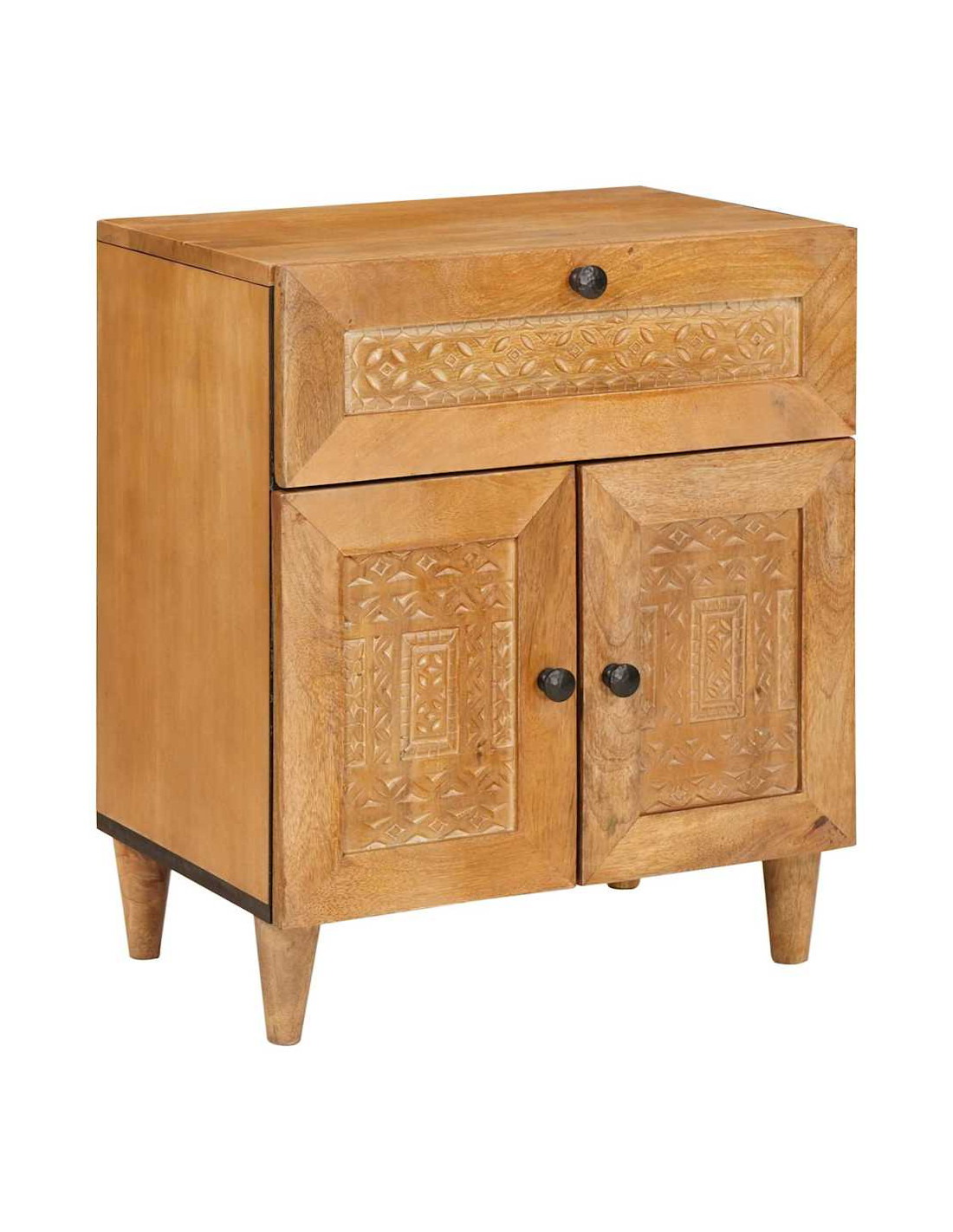 - Materiali: Questo comodino è fatto in legno massello di mango, dura a lungo e porta un tocco naturale. La texture liscia del legno mette in evidenza la sua bellezza, rendendolo un'ottima scelta per casa tua. È costruito per durare, ed è ideale per chi cerca sia bella estetica che solidità. Inoltre, si pulisce facilmente e resiste all’uso quotidiano.